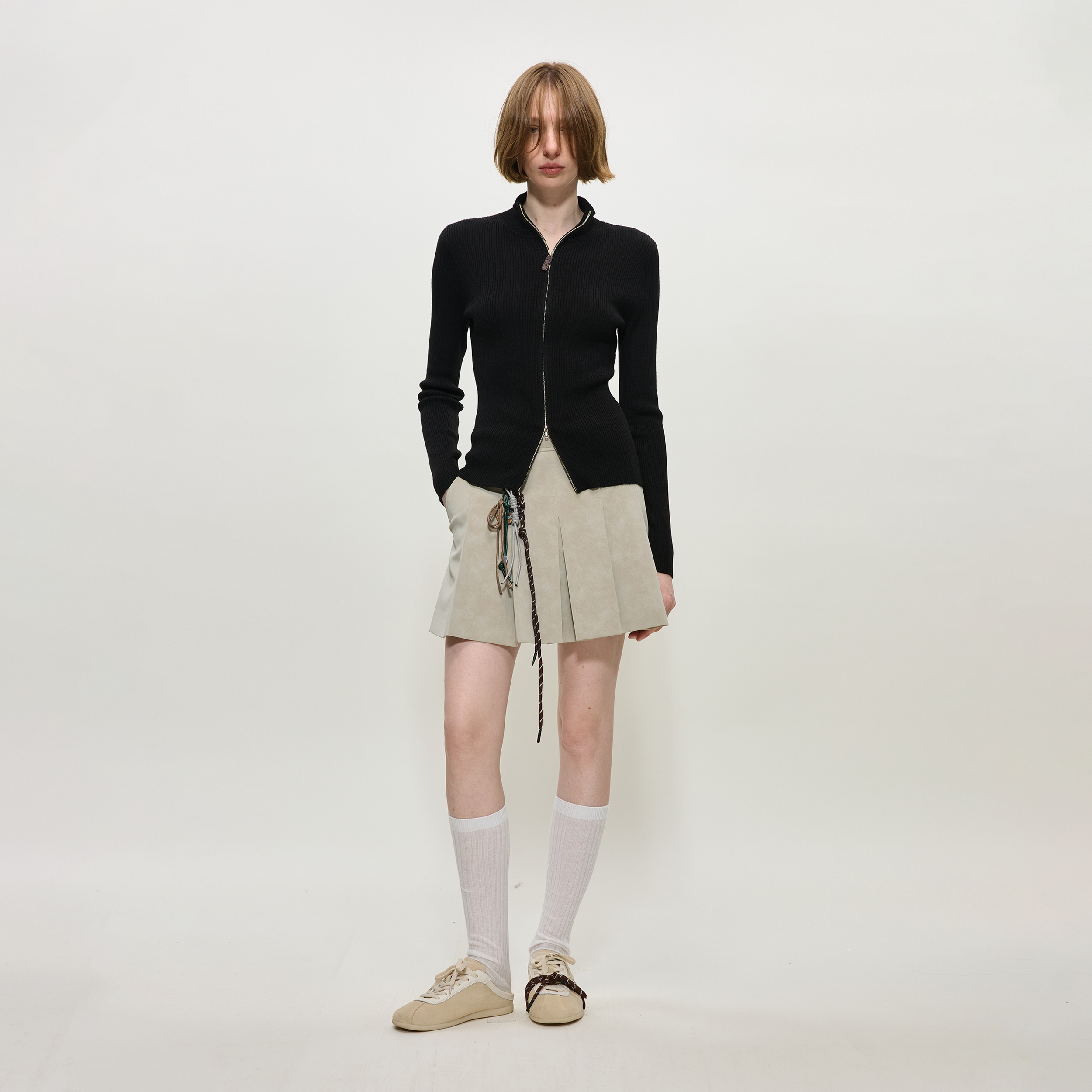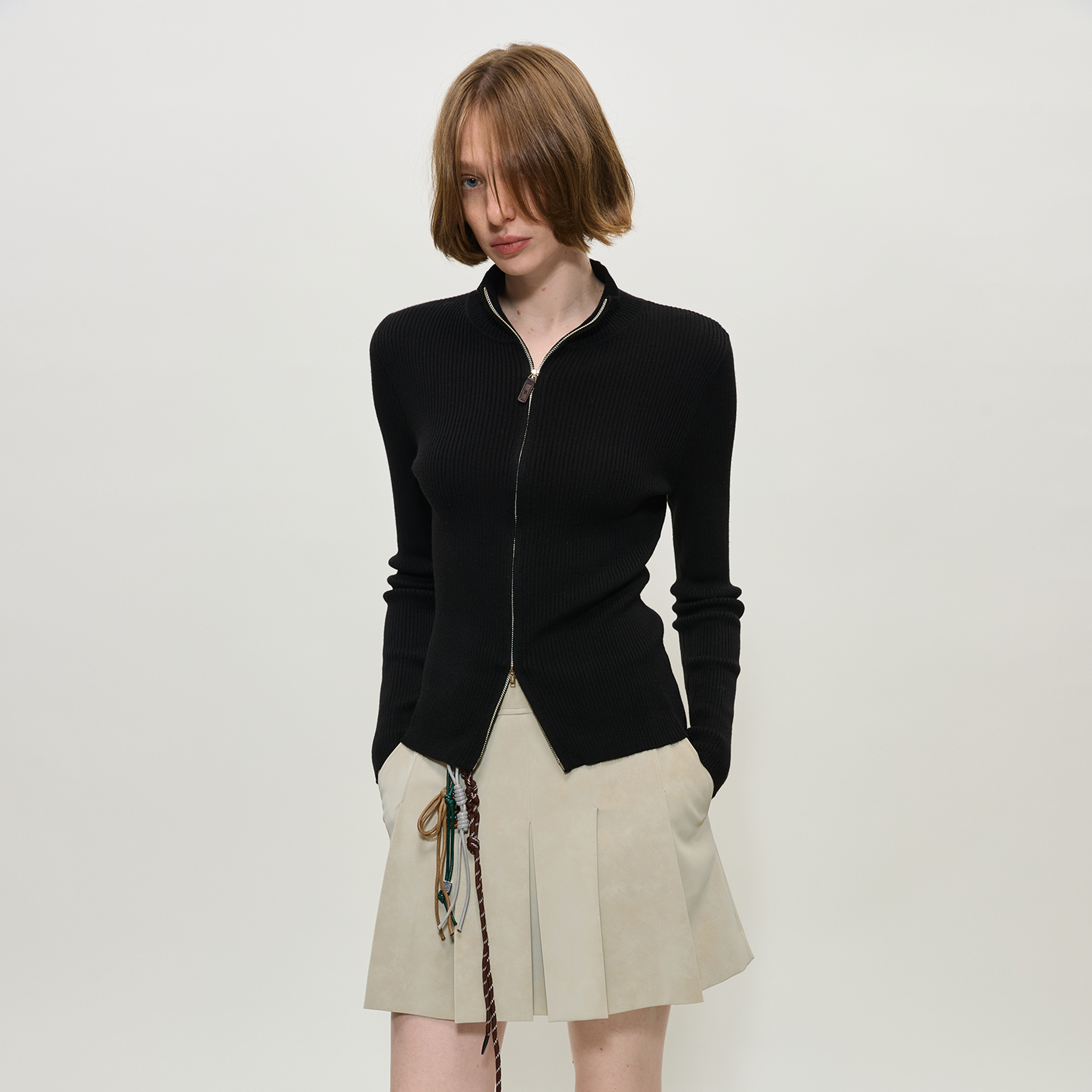 拉链宽松毛衣男中领针织衫 肌理波纹开衫 506165 新款 三福2025秋冬季