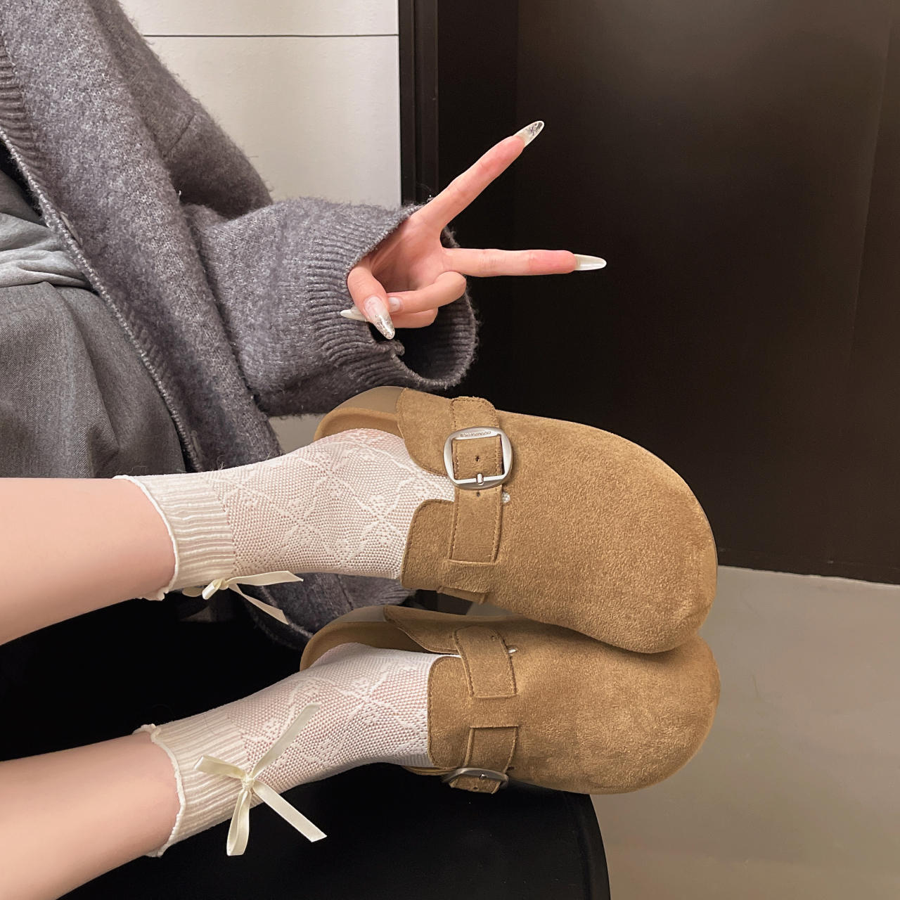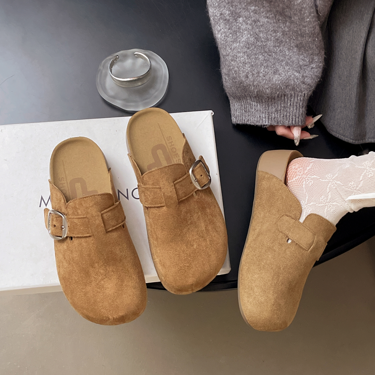 真皮 一脚蹬懒人博肯鞋 春秋勃肯鞋 女包头孕妇半拖外穿2025复古新款