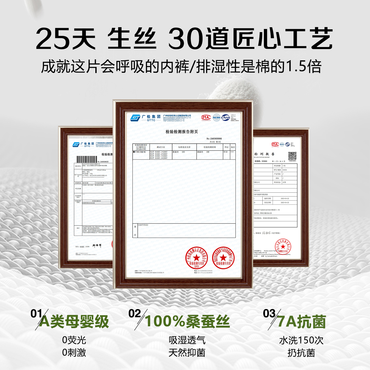 蕉序100%桑蚕丝加长裆纯棉高腰微收腹2025新款 7A级抗菌 秋女士内裤