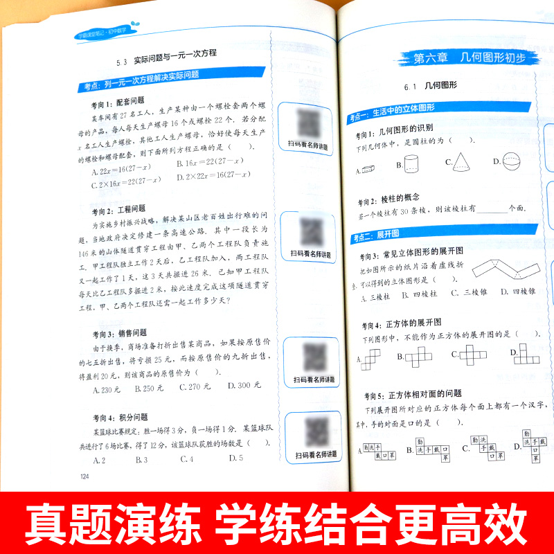 学霸课堂笔记初中2025新版 全套同步课本教材语文数学英语物理化学历史黄冈初中生专用7七上A 七八九年级初一二三上册下册配套人教版