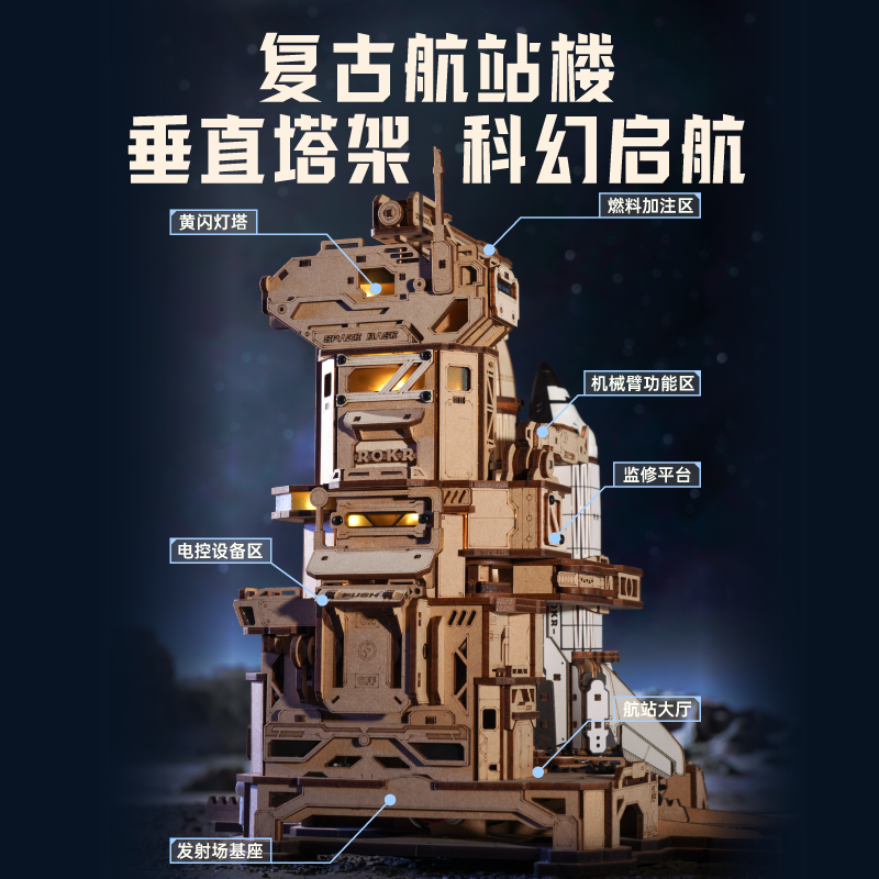 若客航天飞机模型积木成人版 玩具diy手工拼图男孩益智新 木质拼装