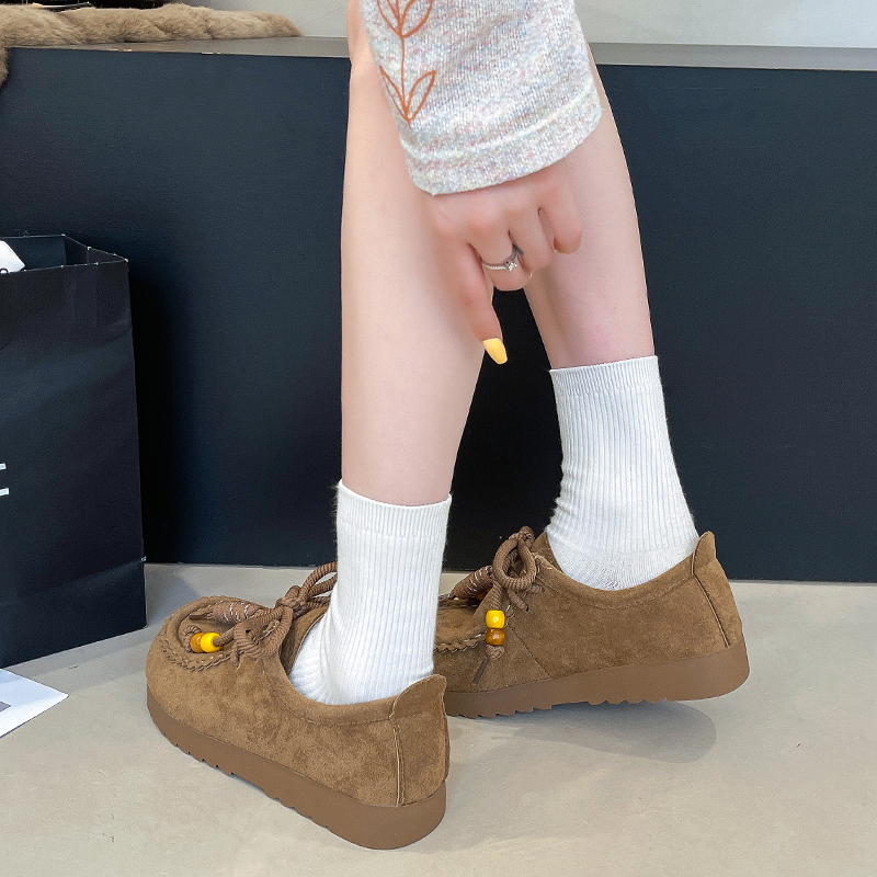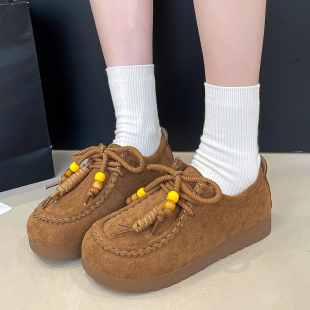 2025秋季 女款 新款 复古百搭袋鼠鞋 赵露思同款 松糕厚底豆豆鞋 勃肯鞋