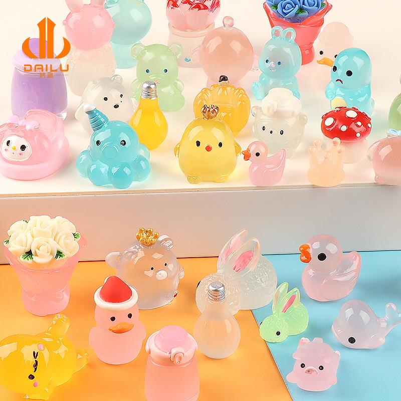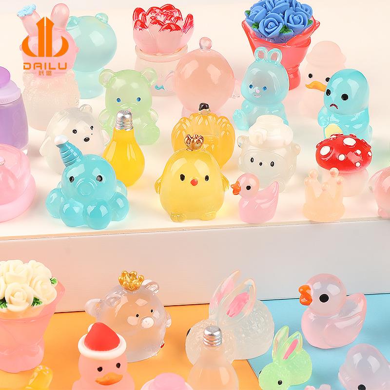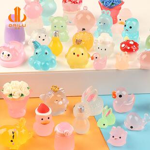 网红夜光小鸭子玩具桌面摆件迷你荧光饰品儿童仿真水晶发光小物件