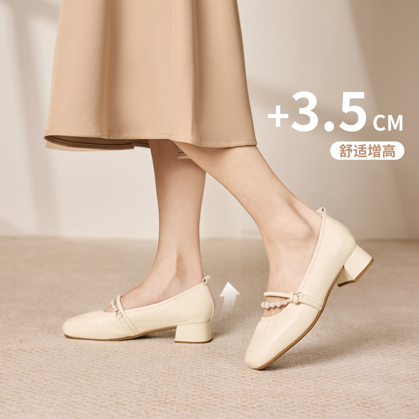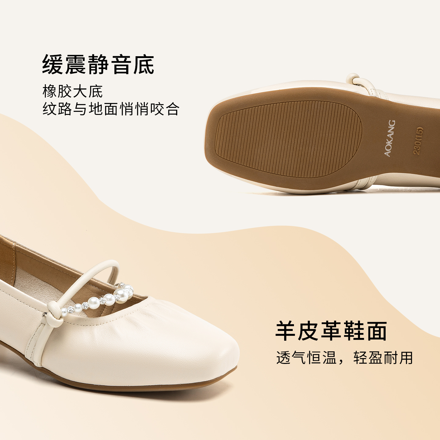 玛丽珍真皮优雅珍珠约会浅口单鞋 2025秋季 配裙通勤中跟 女鞋 奥康