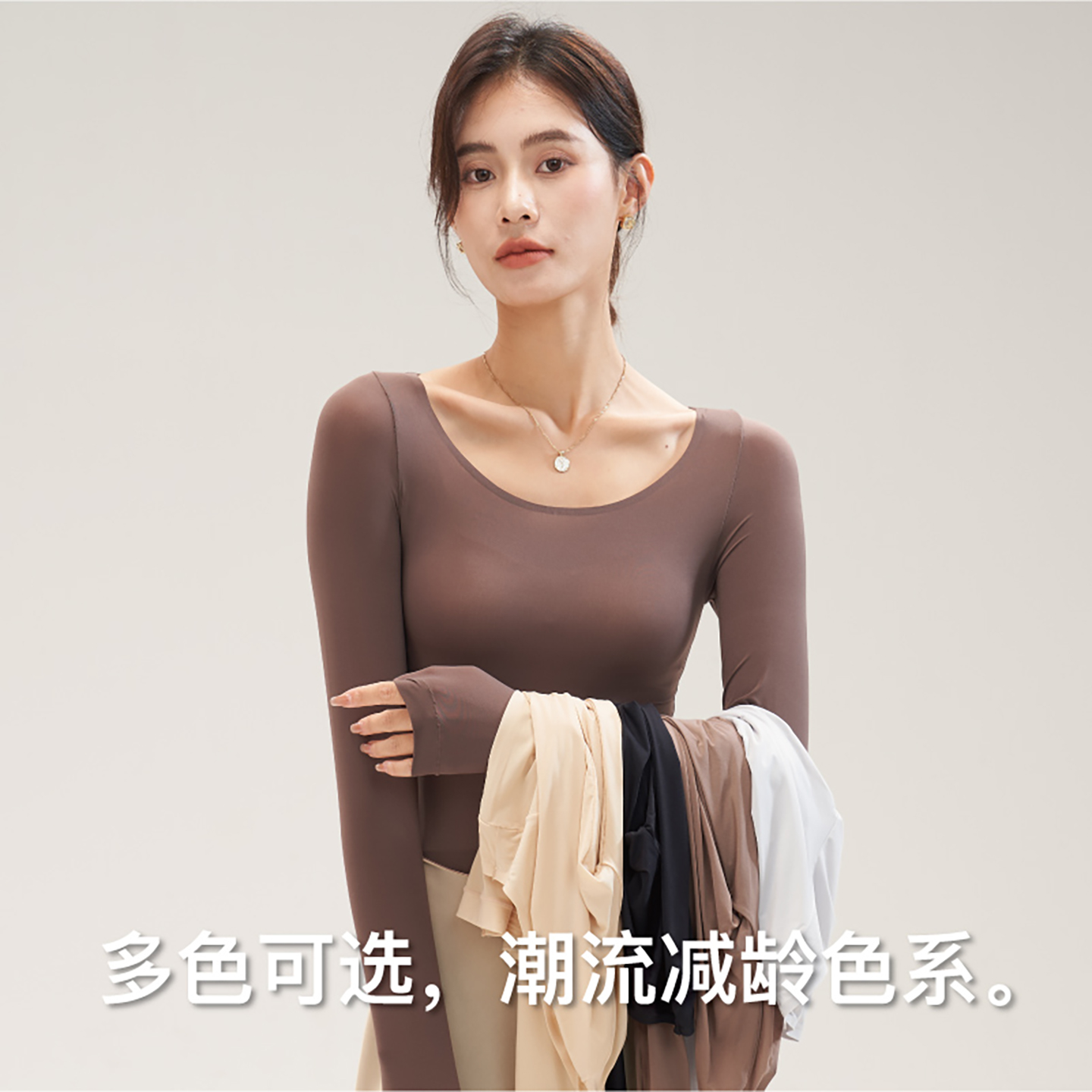 修身 春秋内搭超薄隐形无痕长袖 上衣面膜秋衣 女2025新款 黑色打底衫