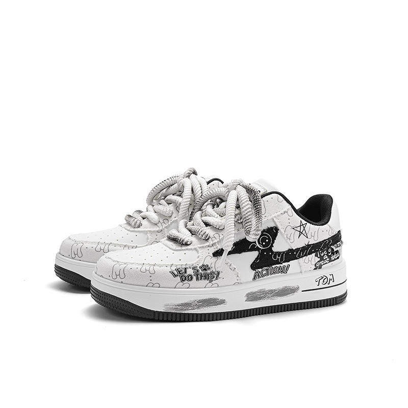 男款 休闲板鞋 春秋季 青少年时尚 汤姆猫鞋 百搭涂鸦空军小白鞋 子男鞋