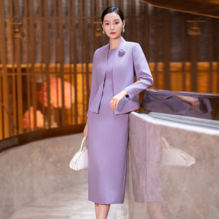 气质通勤职业西装 紫色时尚 新款 裙女2025秋季 外套连衣裙两件套 套装