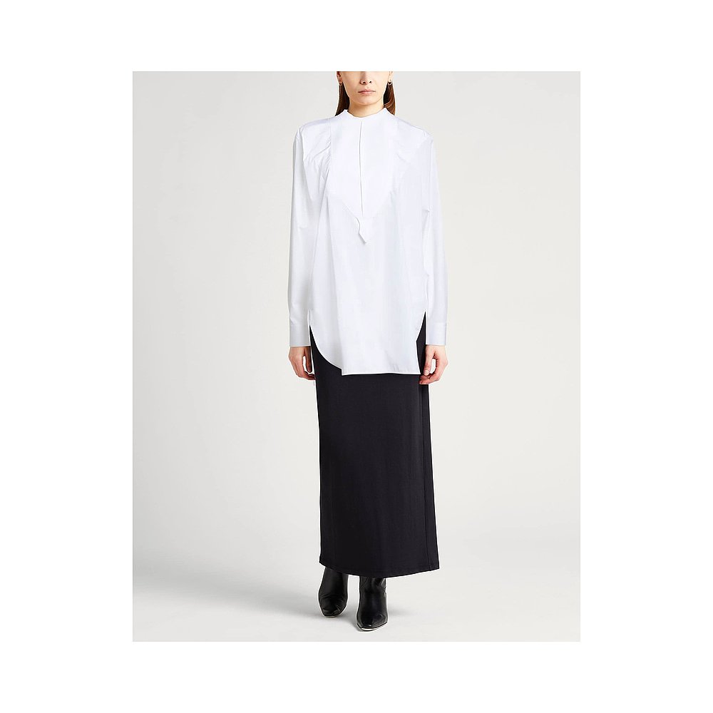 木耳边拼接长袖 蓝色衬衫 法式 新款 全棉衬衣内搭打底上衣 女2025秋季