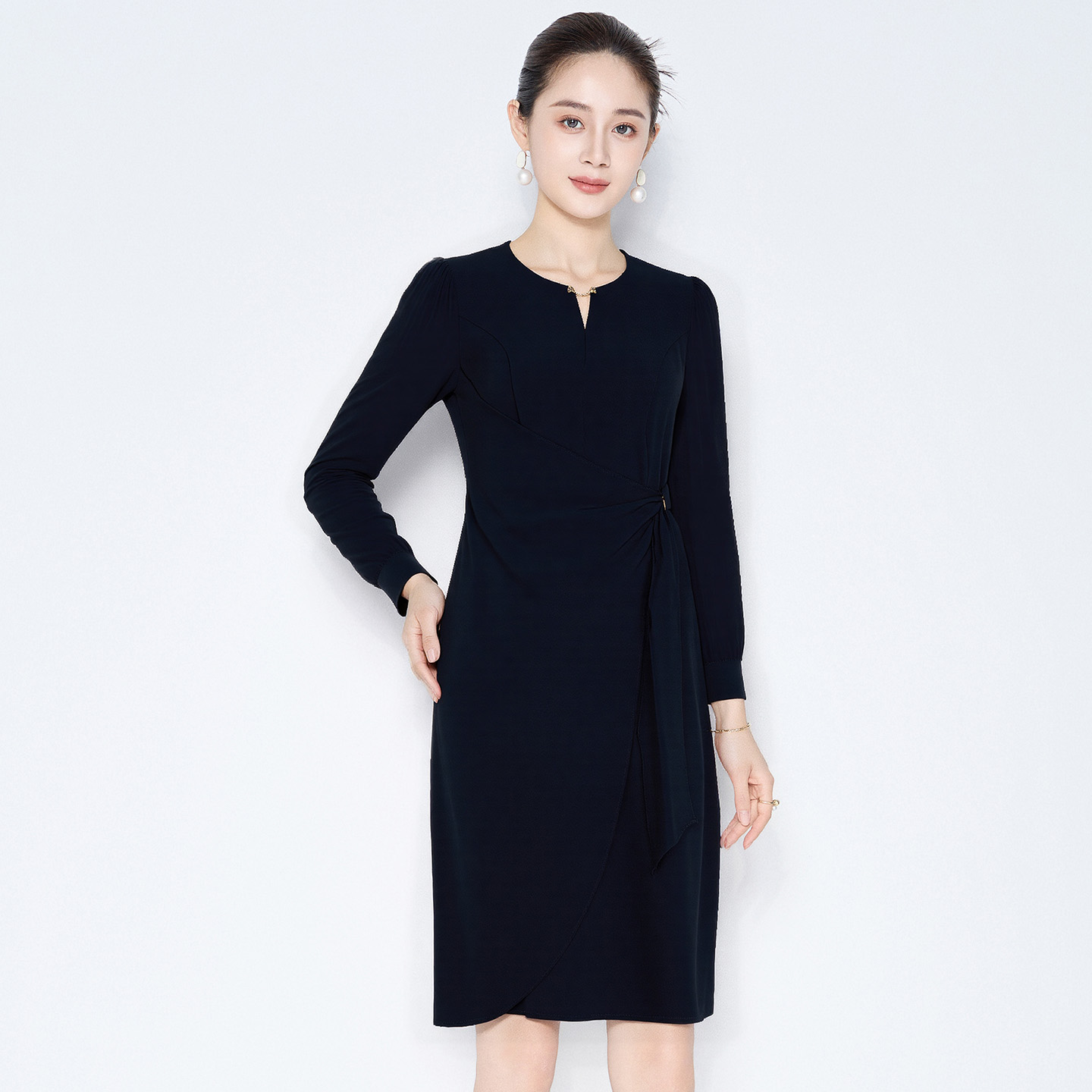 粉蓝衣橱2025秋冬新款 BBLLUUEE 雅致通勤收腰连衣裙 简约大气