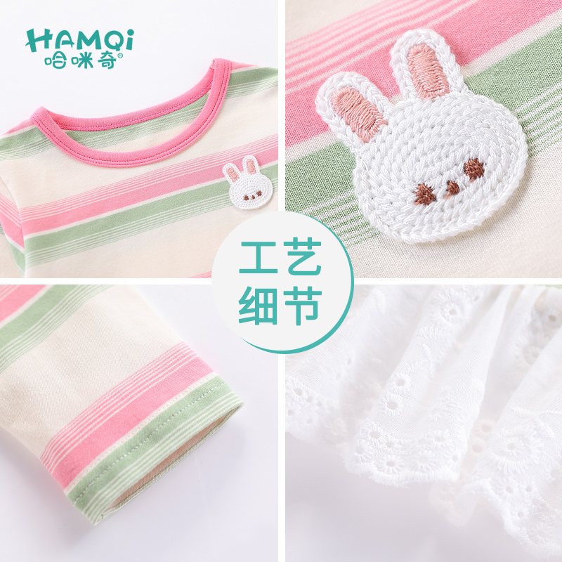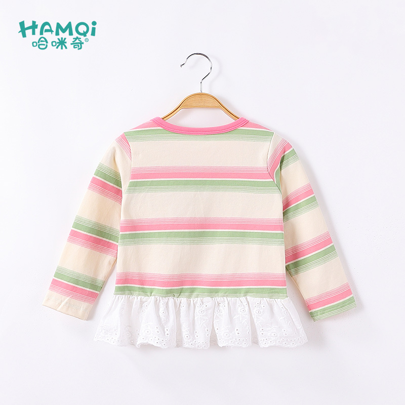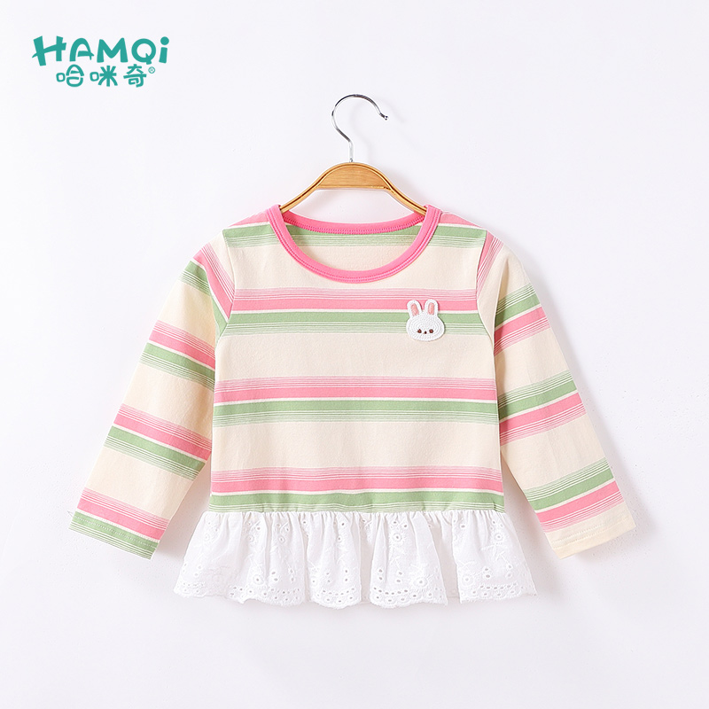 拼接裙式 女童长袖 女宝宝新款 小儿童条纹打底衫 下摆上衣 T恤春秋季