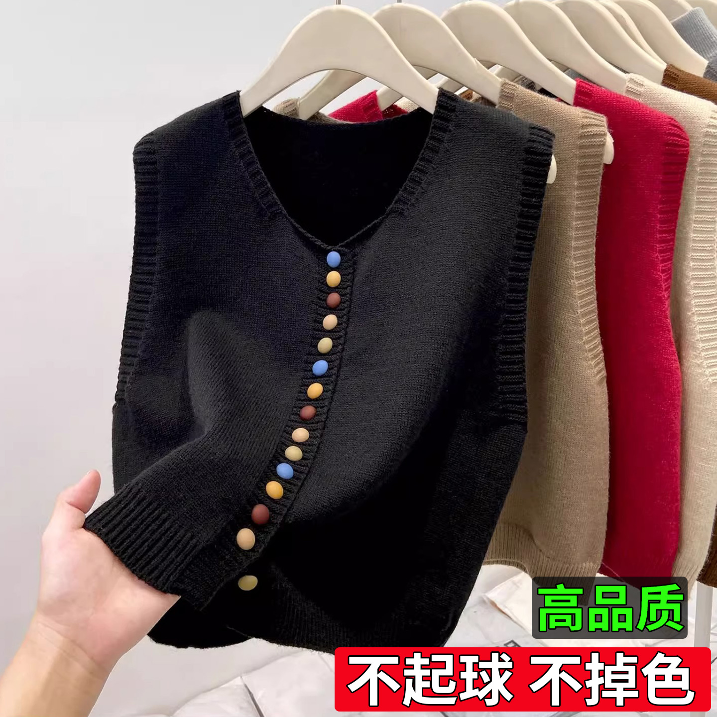 镂空花边纽扣针织衫 秋天叠穿马甲 吊带背心女内搭上衣外搭独特罩衫