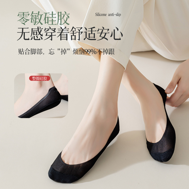 高跟鞋 袜子薄款 袜子 冰丝隐形袜棉制底防滑不掉跟浅口鞋 船袜女夏季