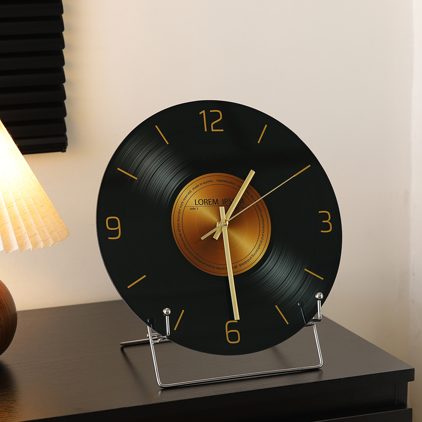 饰品摆件 座钟电视柜装 创意复古黑胶唱片桌面时钟摆台式 钟表摆放式