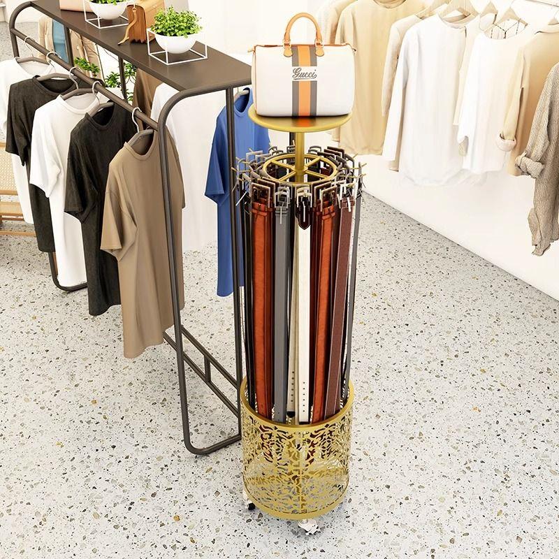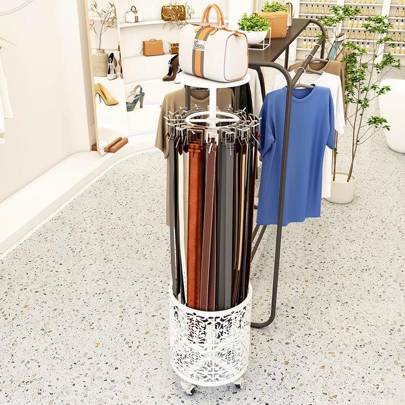 服装 店简约圆筒皮带包包展示架腰带领带货架落地旋转可移动陈列架