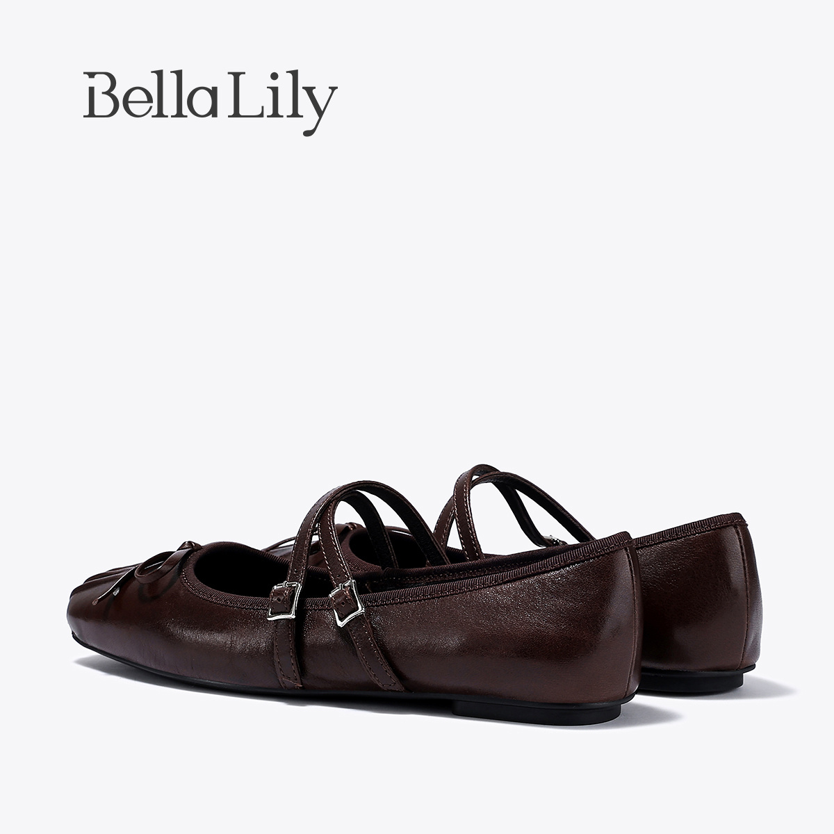 羊皮单鞋 复古方头玛丽珍蝴蝶结芭蕾风女鞋 新款 BellaLily2025秋季
