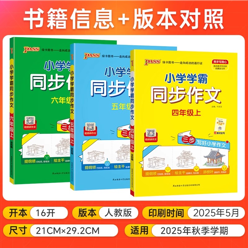 2025小学学霸同步作文三年级上册四年级五六年级人教版 同步阅读理解训练看图说话写话一年级二年级优秀开心作文书PASS绿卡图书目标
