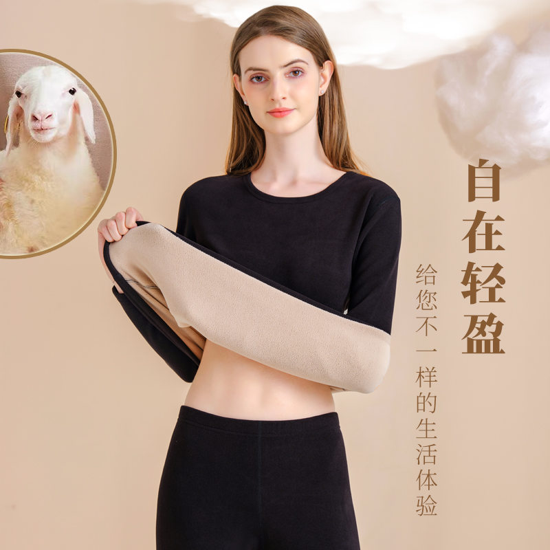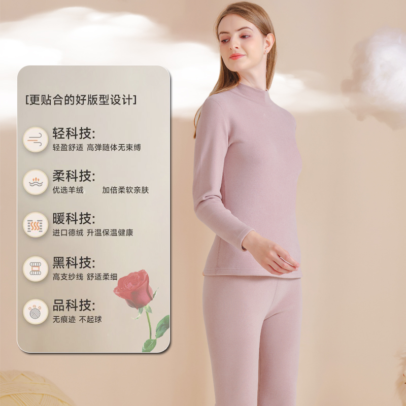 打底棉毛衫 上衣冬季 德绒 中高领秋衣秋裤 保暖内衣女士加绒加厚套装