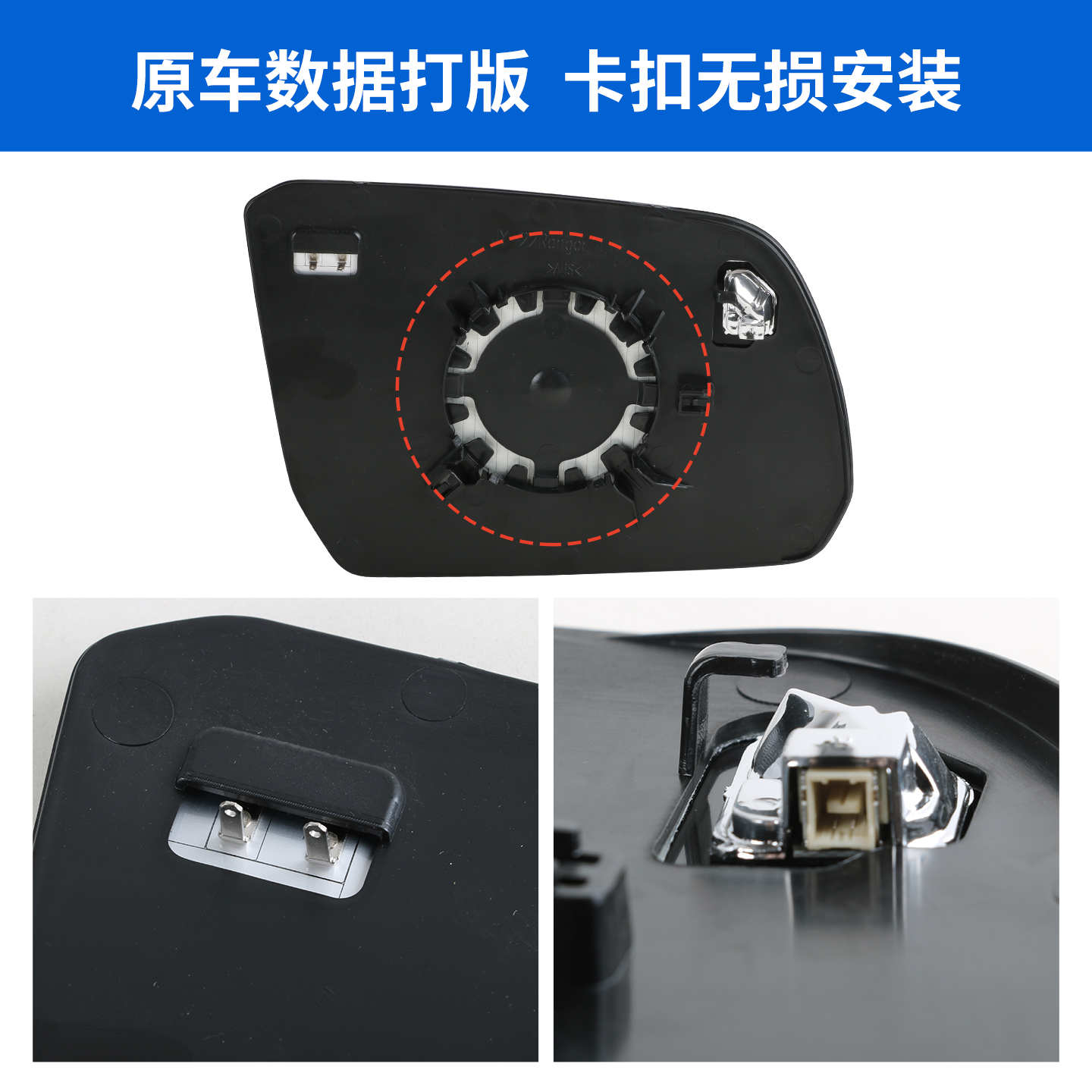 倒车镜镜片加热盲区预警 福特游骑侠Ranger后视镜片 适用于22 25款