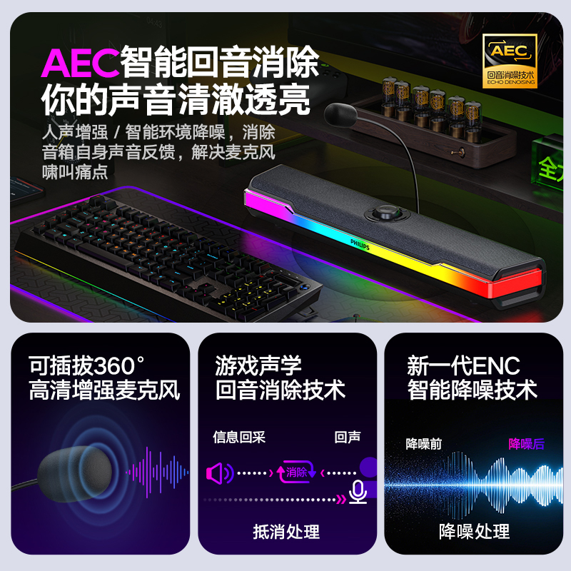 飞利浦SPA6110电脑音响台式 家用游戏电竞蓝牙桌面音箱麦克风一体