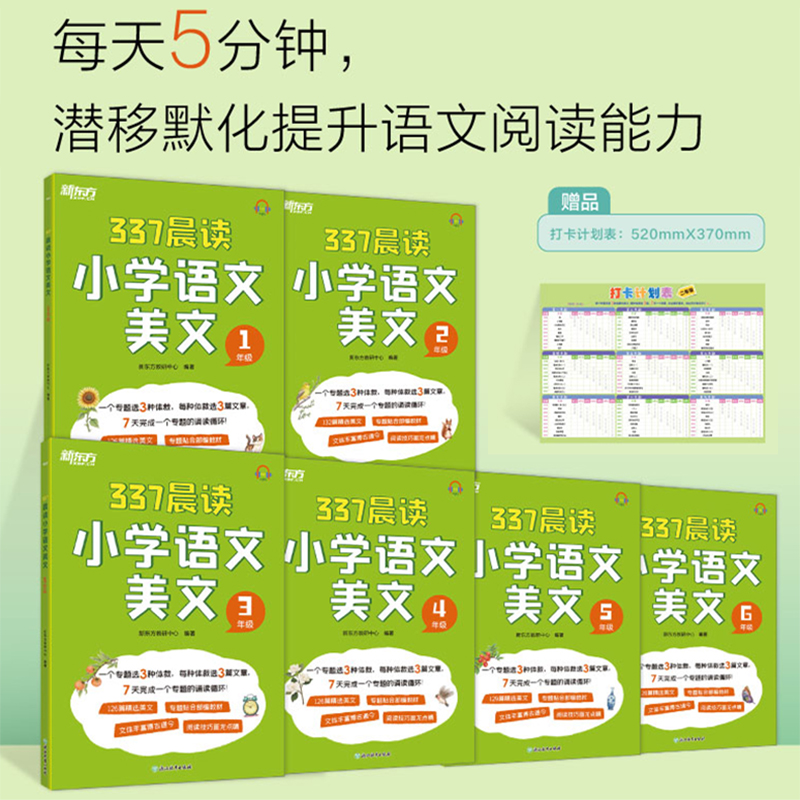 2025新东方小学语文晨读晚读美文337晨读法一二三四五六年级语文优美句子阅读素材积累每日一读打卡表小学教辅用书