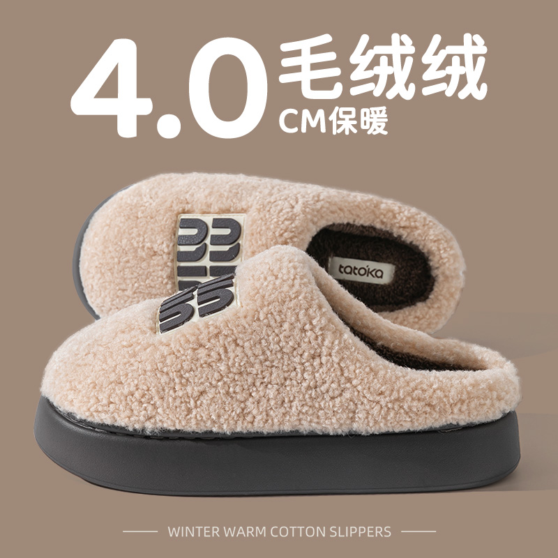 男 居家室内毛毛绒保暖加厚软底防滑情侣拖鞋 厚底棉拖鞋 女士秋冬季