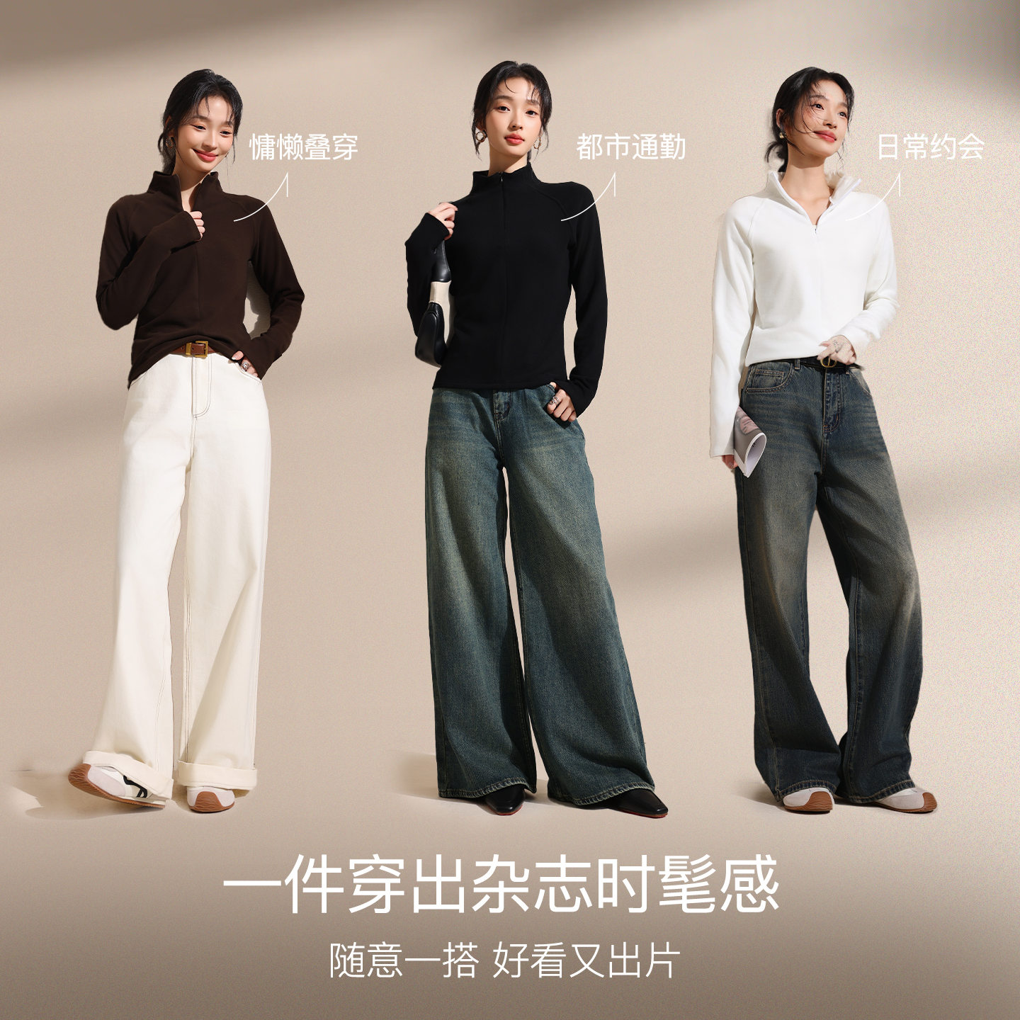 双面绒外套 立领卫衣修身 半高领打底衫 女秋冬加绒加厚内搭拉链开衫
