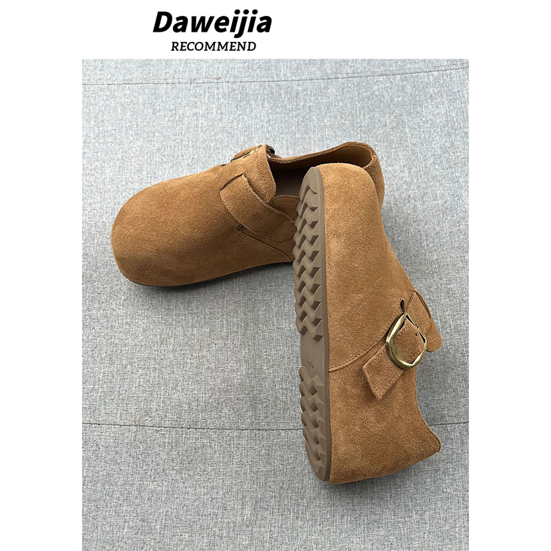 豆豆鞋 防滑休闲单鞋 女2025年秋新款 米家真皮搭扣内增高厚底勃肯鞋