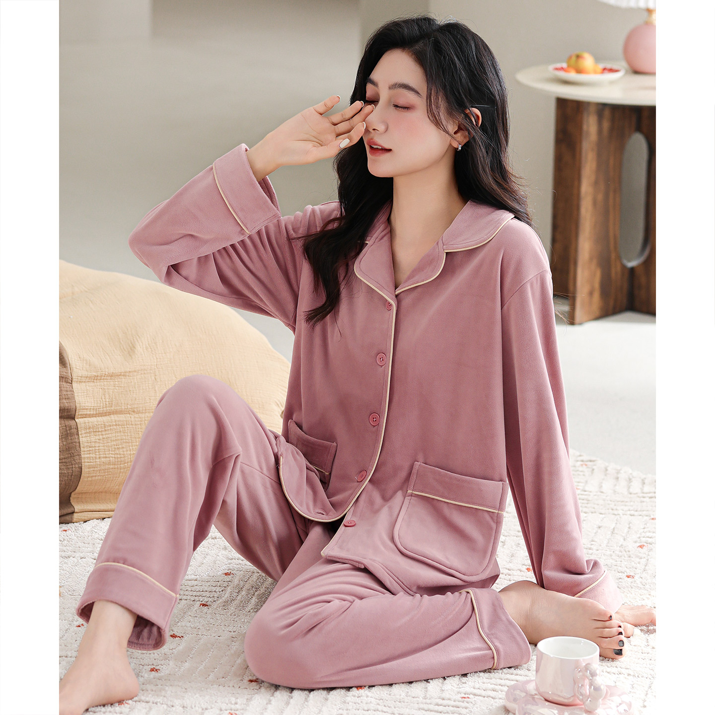 维密宅度假系列奶舒绒睡衣轻柔抗静电保暖家居服套装 女可外穿
