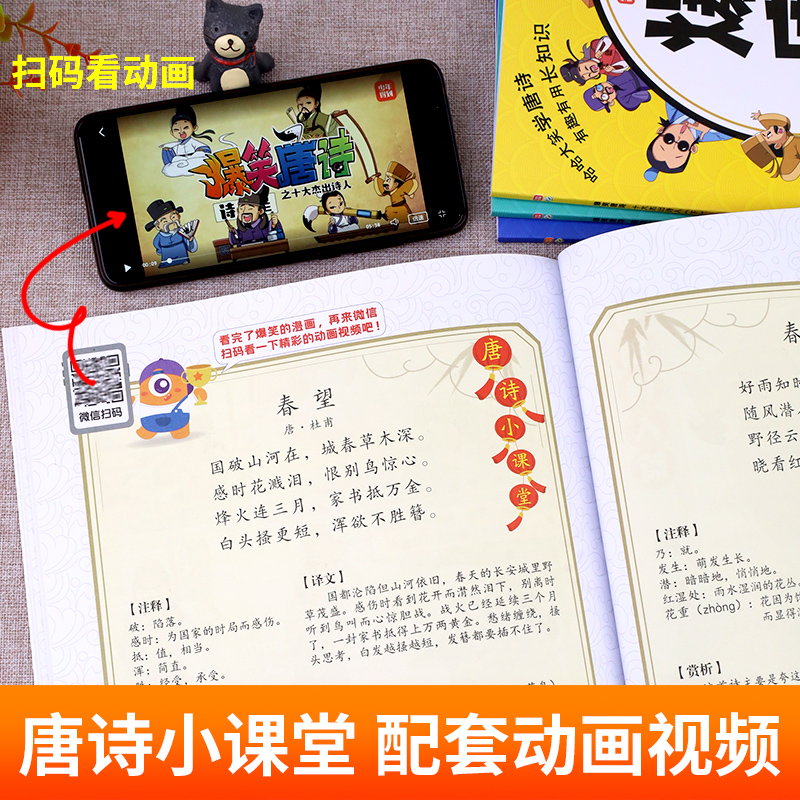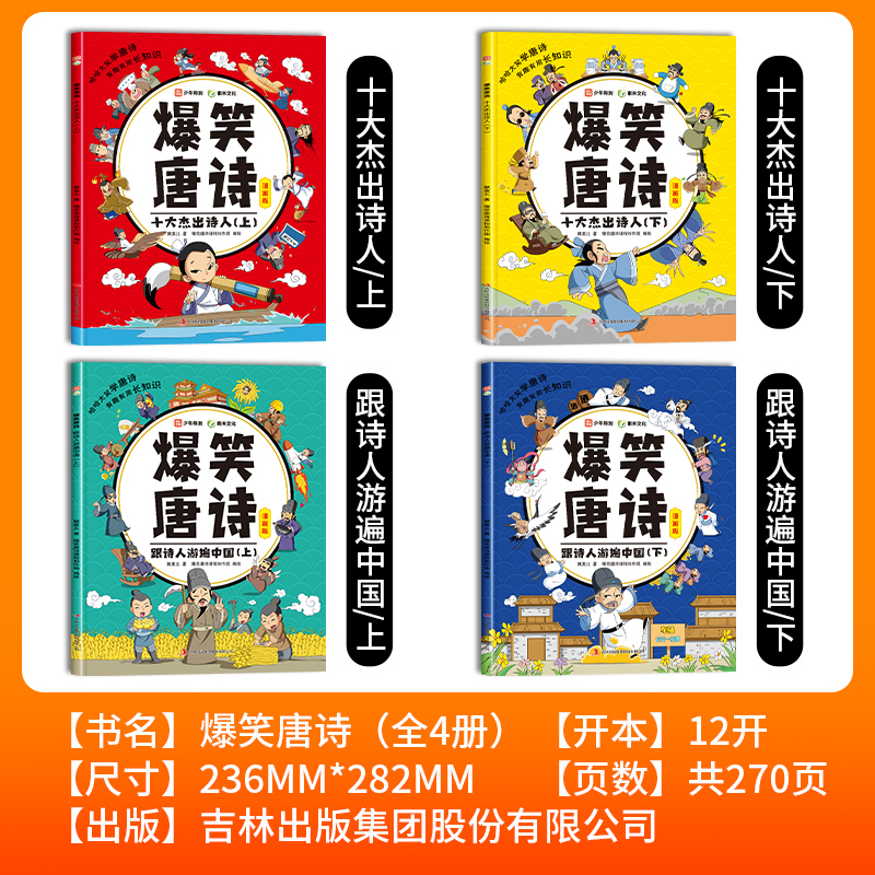 一年级二年级儿童漫画书小学生课外阅读书籍诗词绘本读物雨禾文化 默莫北带你学古诗词张泉灵推荐 爆笑唐诗漫画版 全套4册
