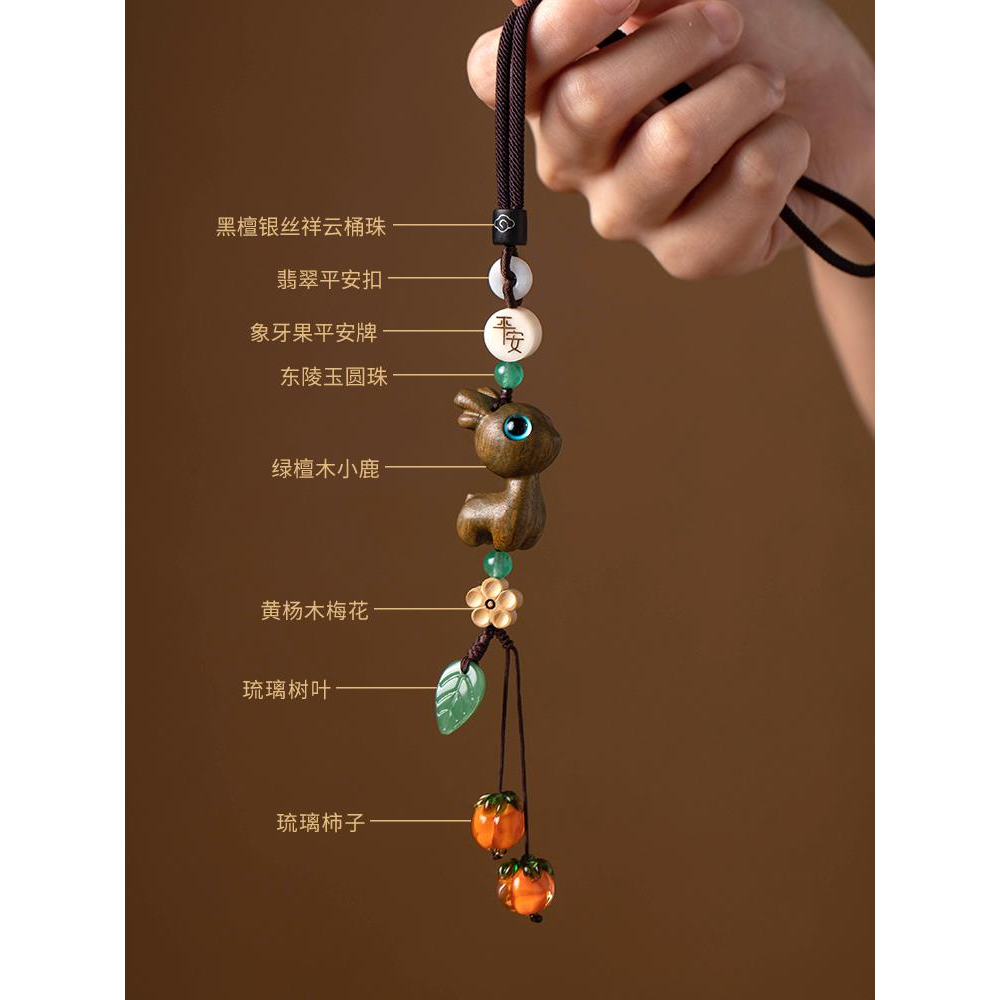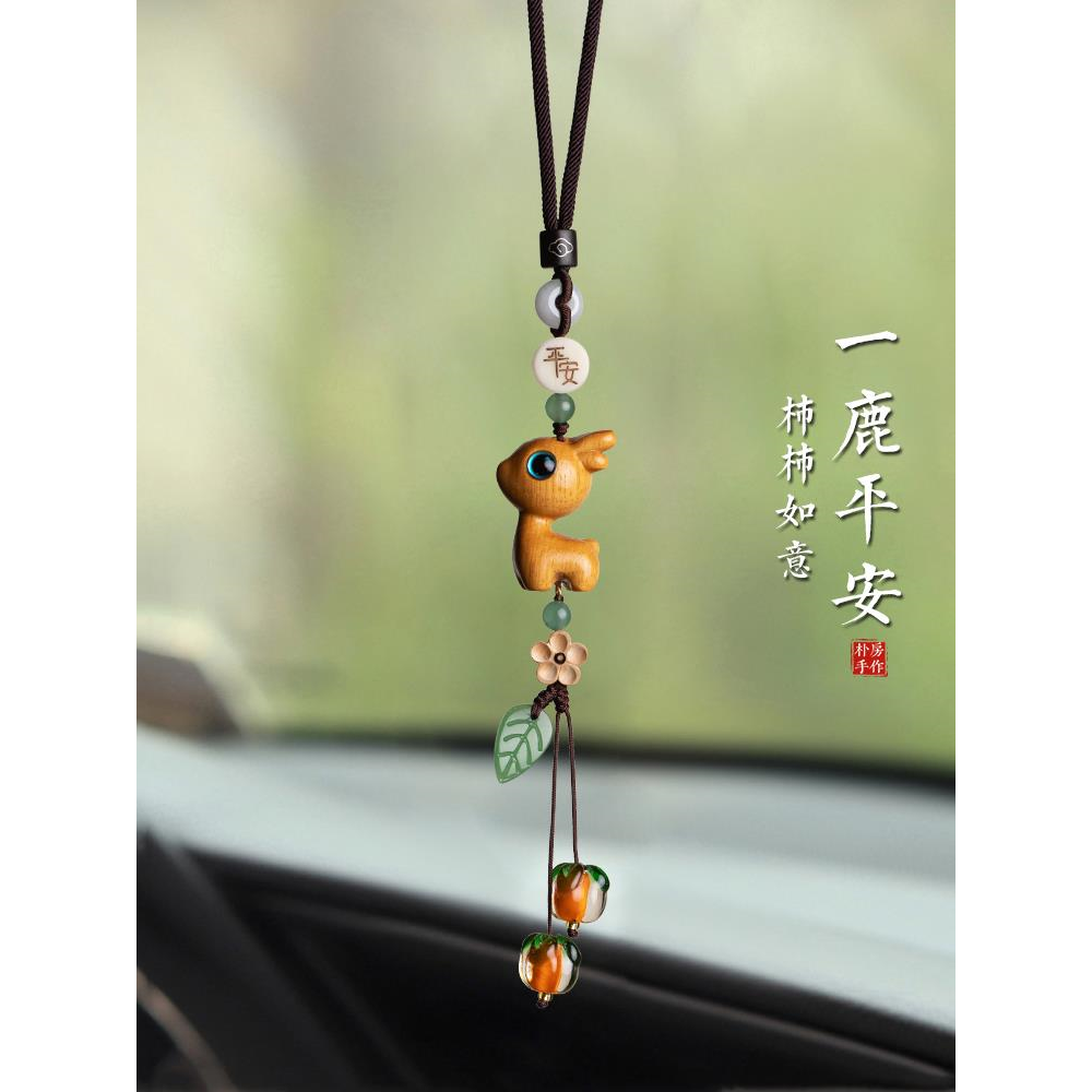 创意平安檀木小鹿车载汽车挂件车内饰品挂饰七夕礼物后视镜吊坠