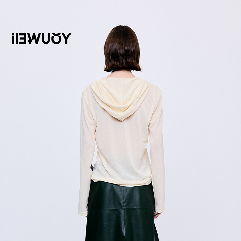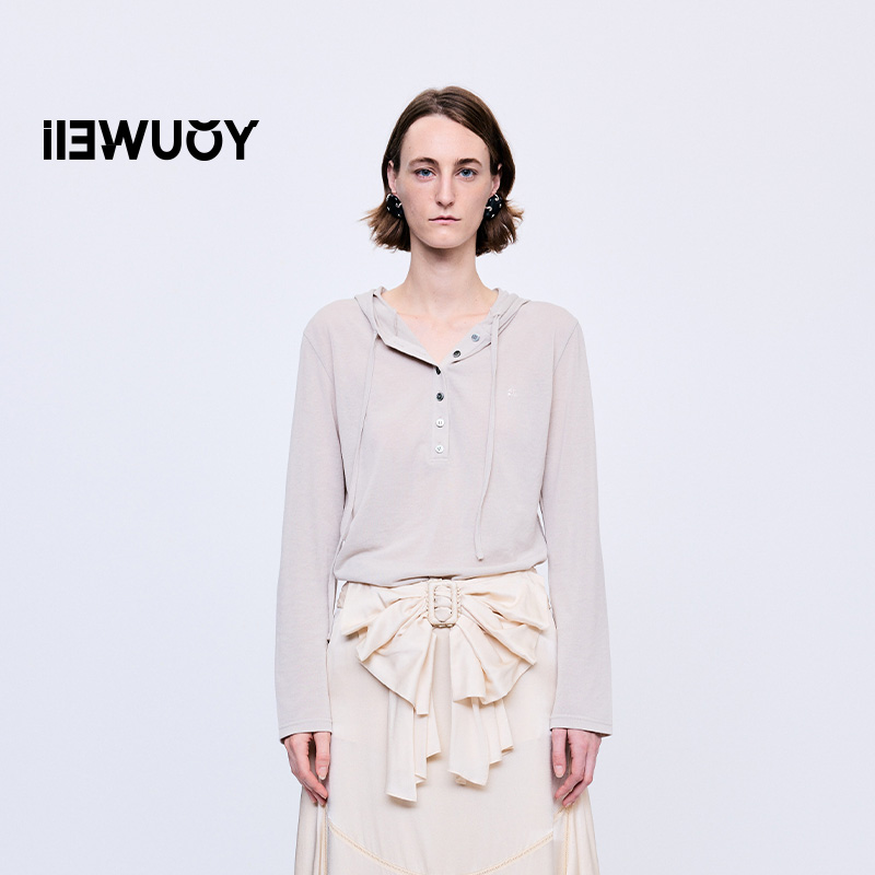T恤Y1225309 高支透爽连帽长袖 YOUWEI有尾2025秋季 新品