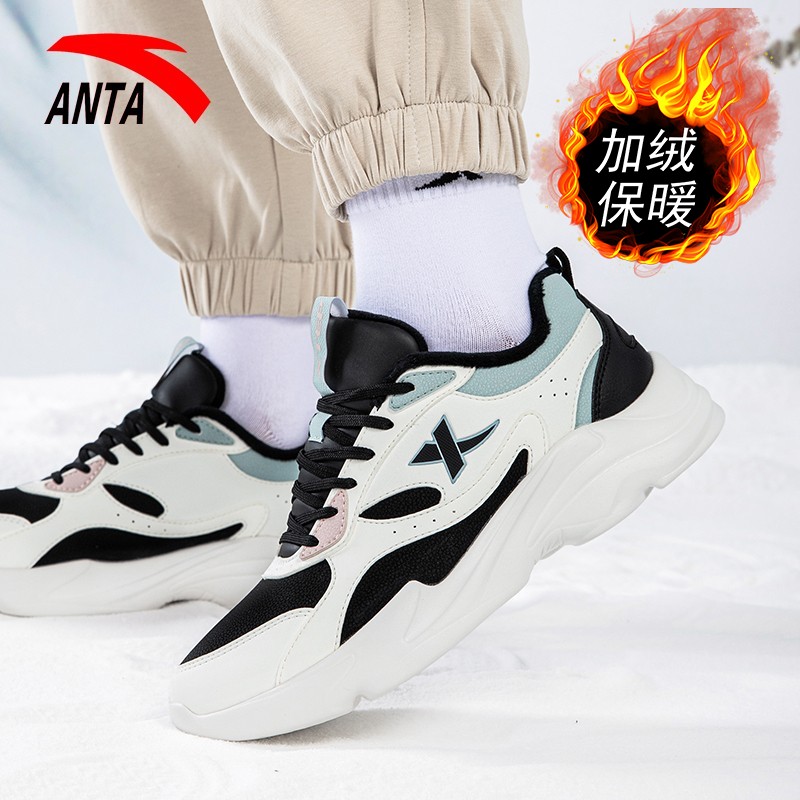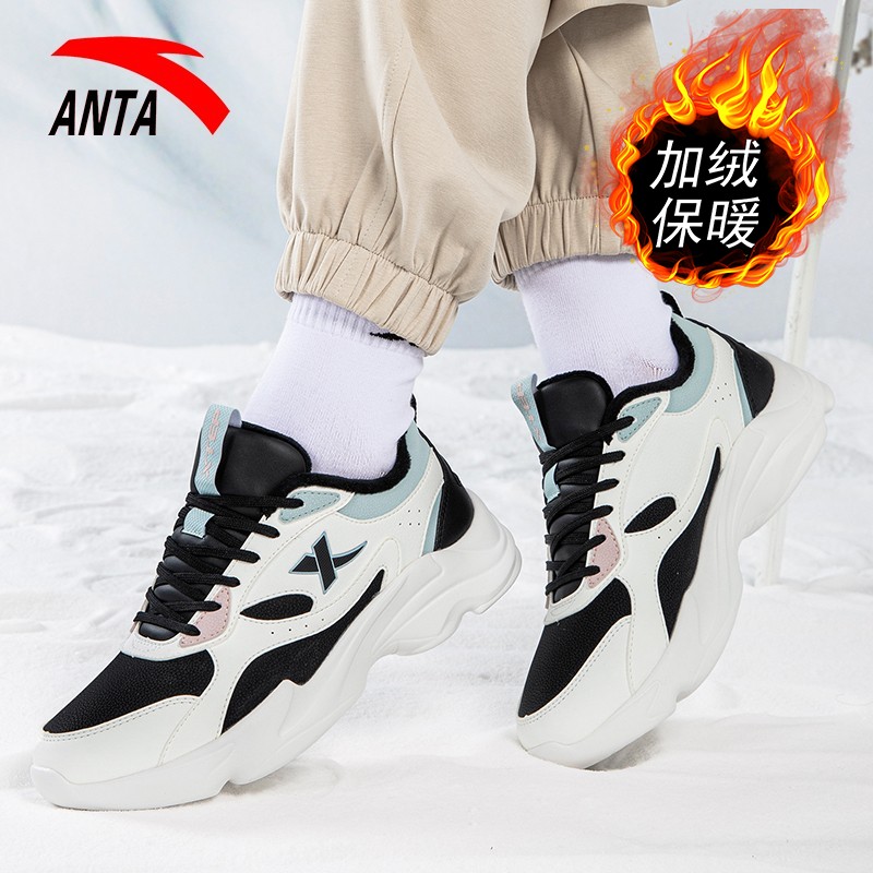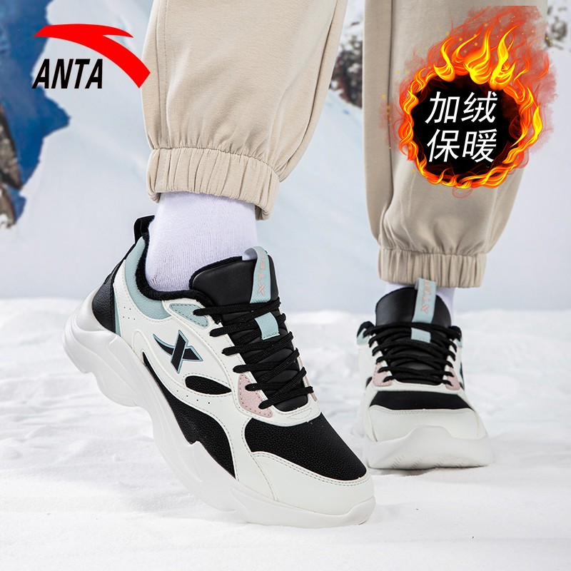 官方旗舰女款 加绒棉鞋 跑步鞋 冬季 子 特步女鞋 保暖皮面休闲鞋 运动鞋