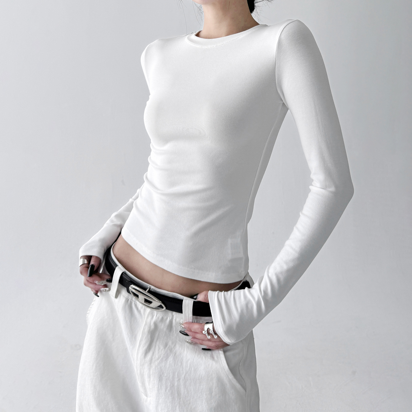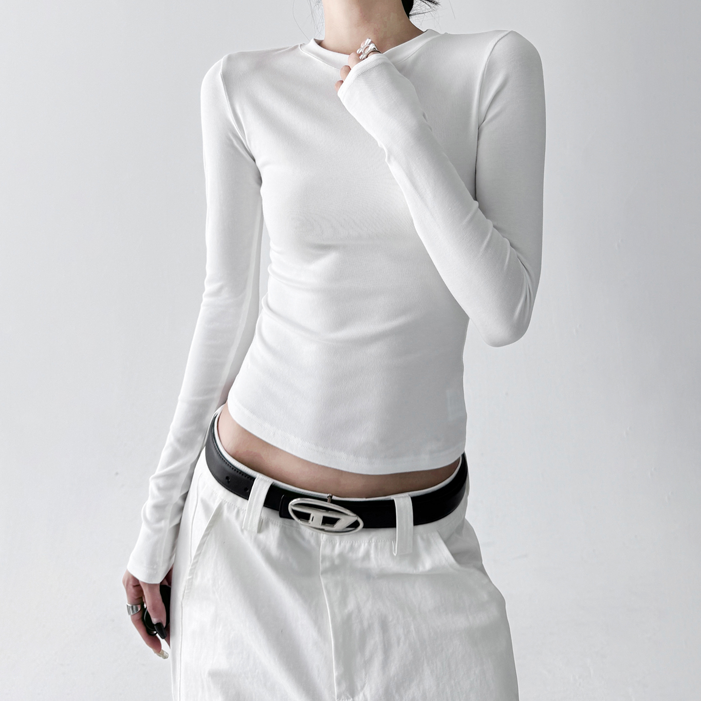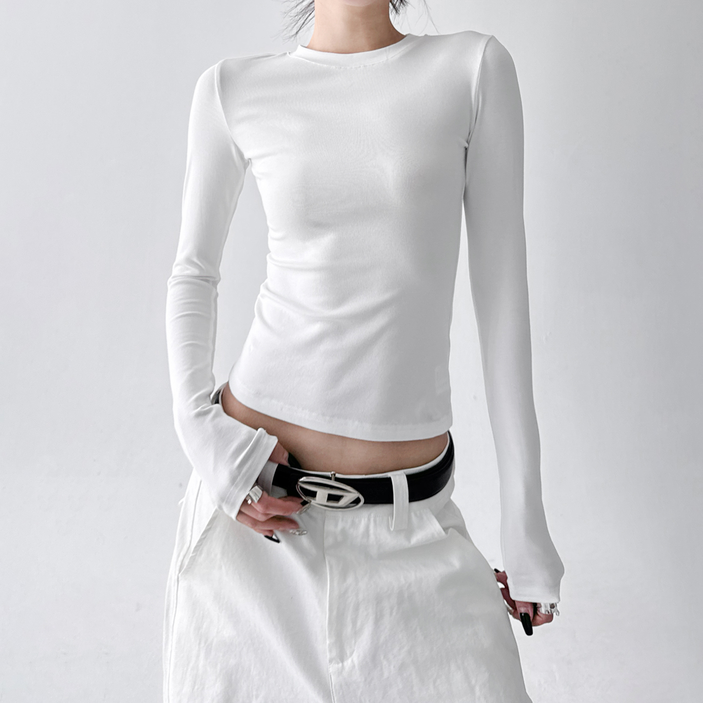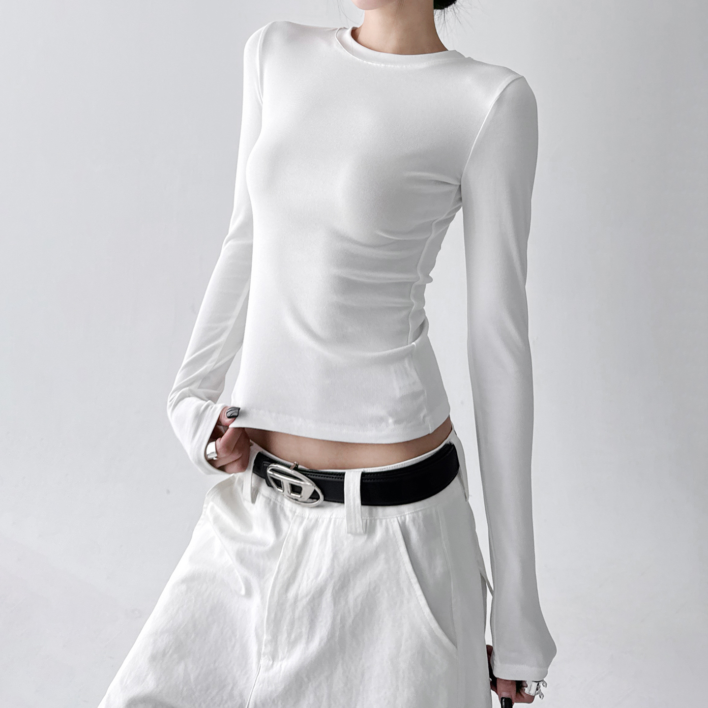 显瘦打底衫 休闲修身 T恤女2025春秋季 简约百搭白色套头内搭长袖