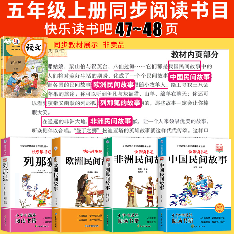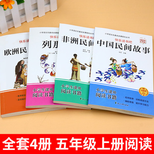 故事快乐读书吧5五上阅读书籍配套人教版 课外书田螺姑娘精选欧洲非洲民间列那狐 书目K 中国民间故事五年级上册必读正版 全套4册