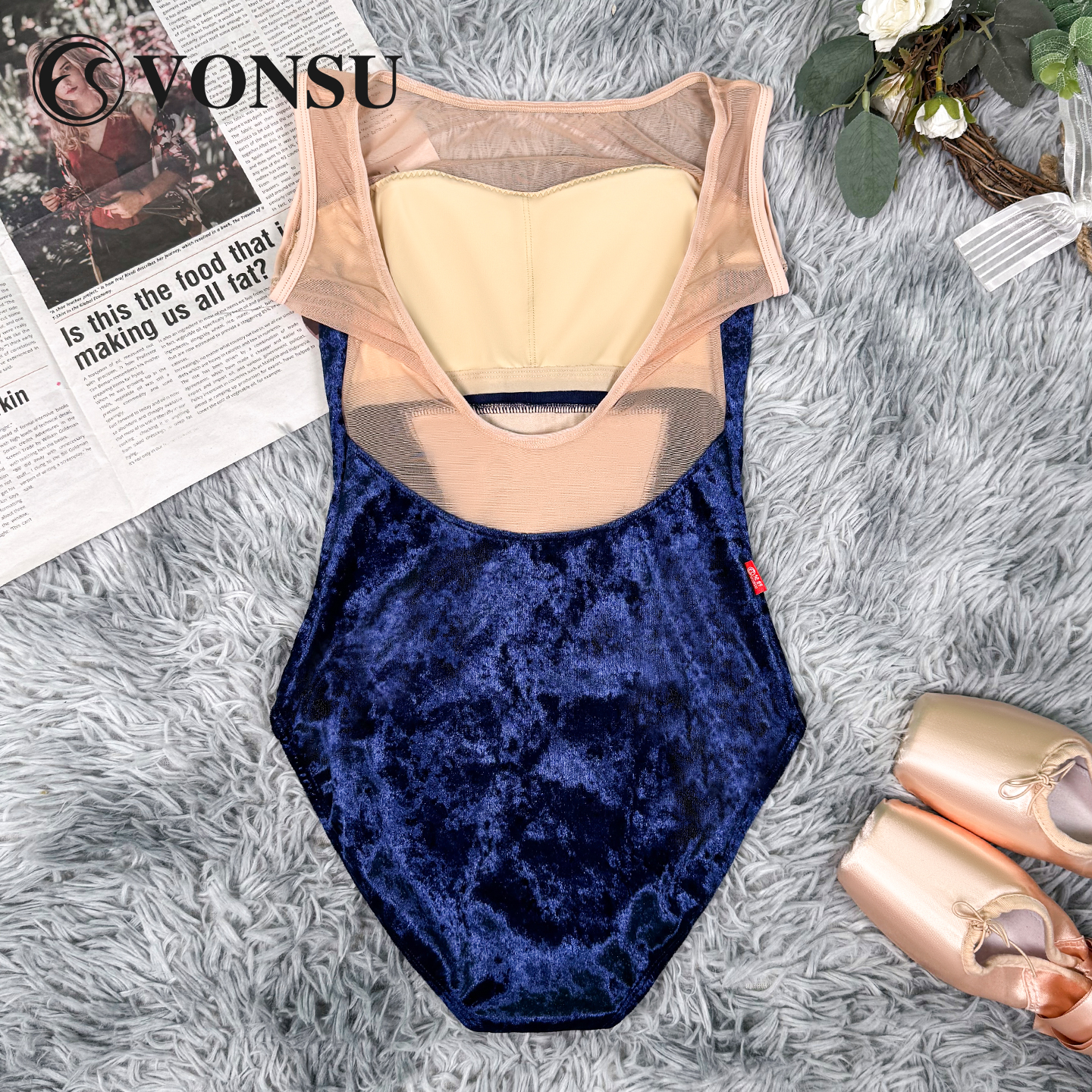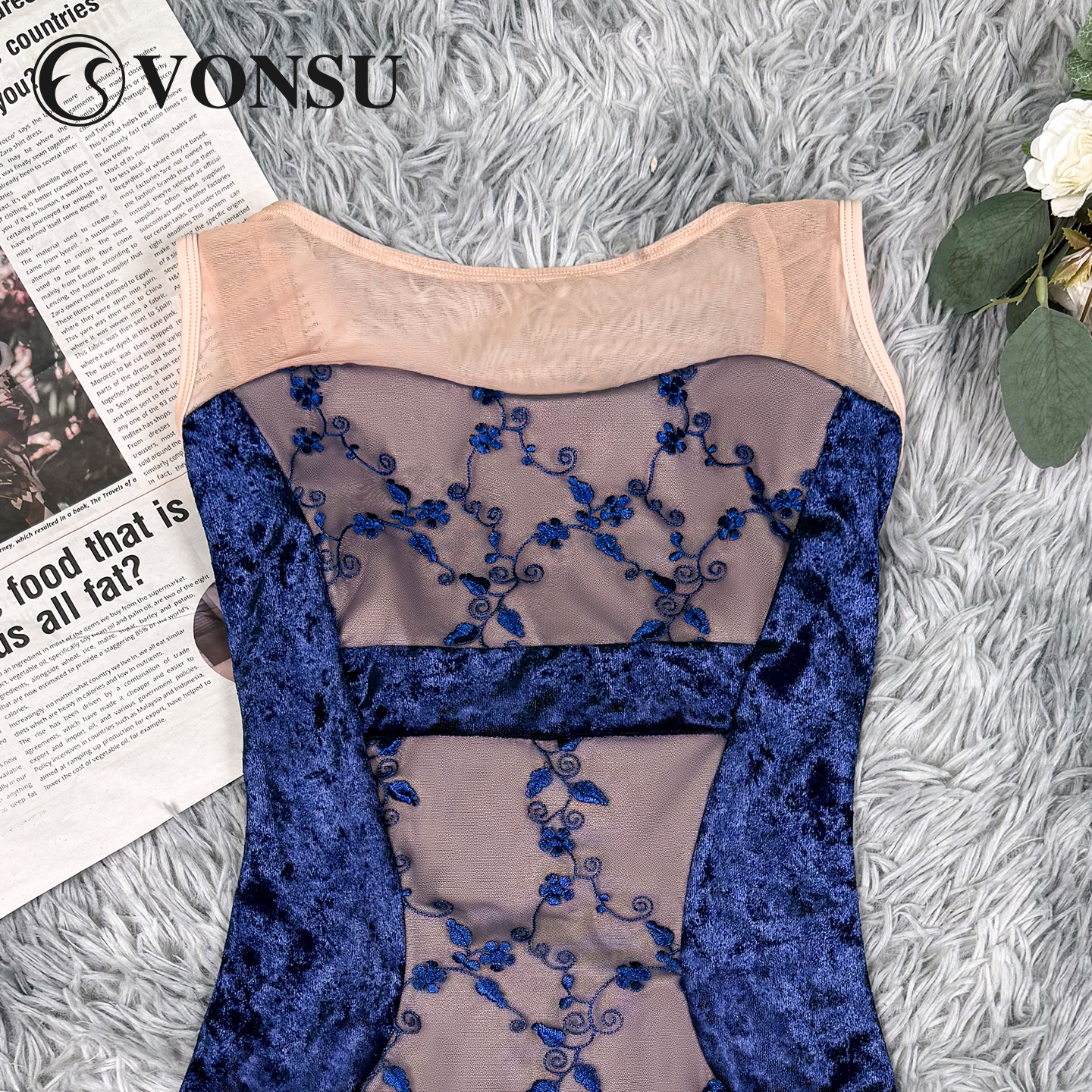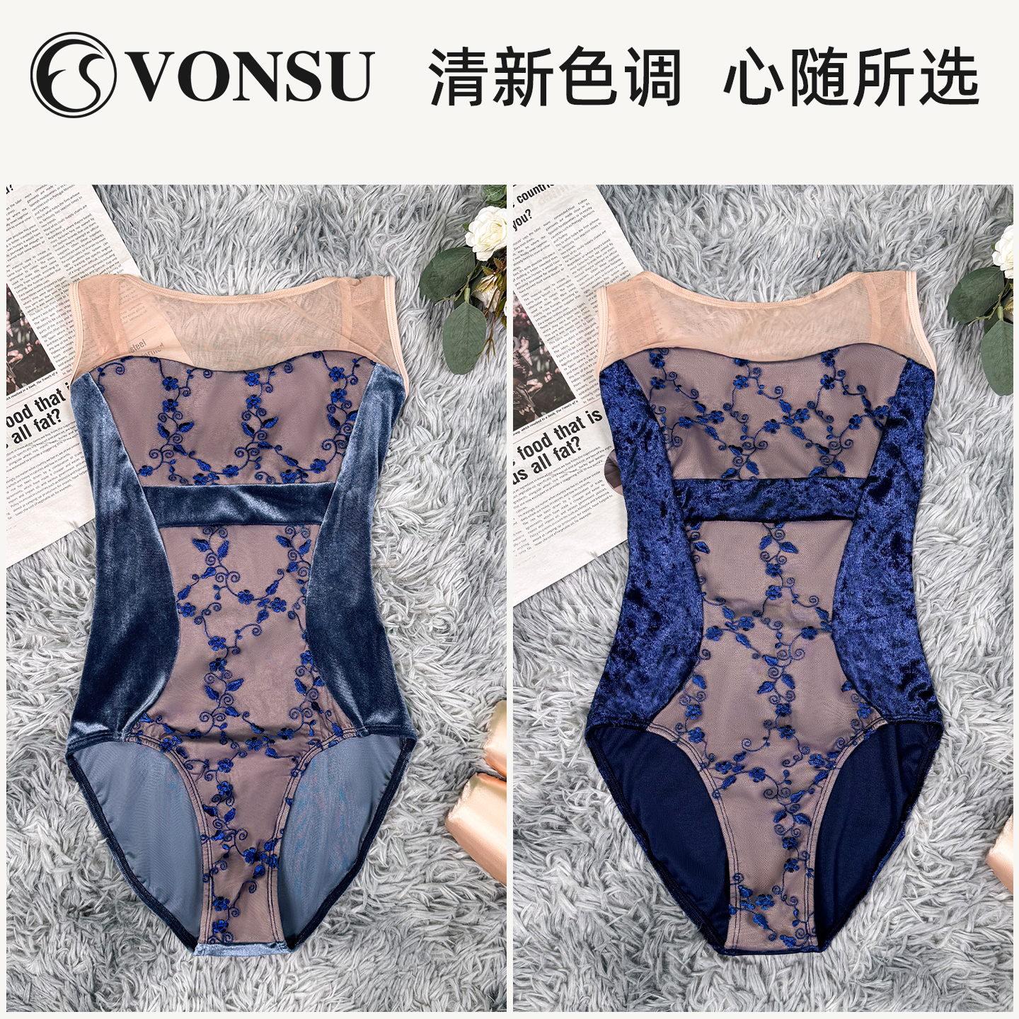 vonsu梵舒芭蕾舞服体操练功服高端刺绣丝绒连体服带胸垫修身 弹力