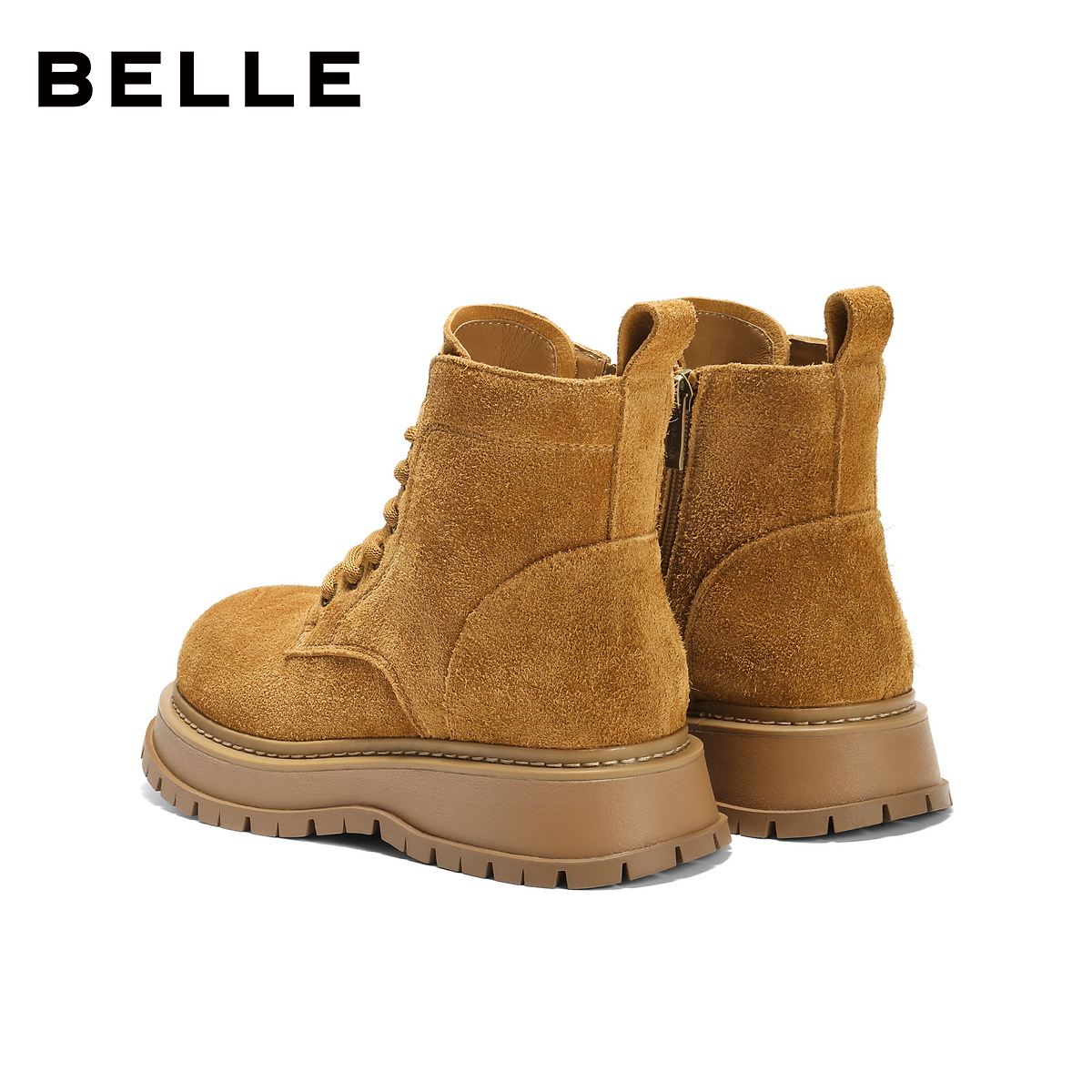短靴子B2908DD5 休闲工装 百丽真皮厚底英伦风马丁靴女25冬季 新款