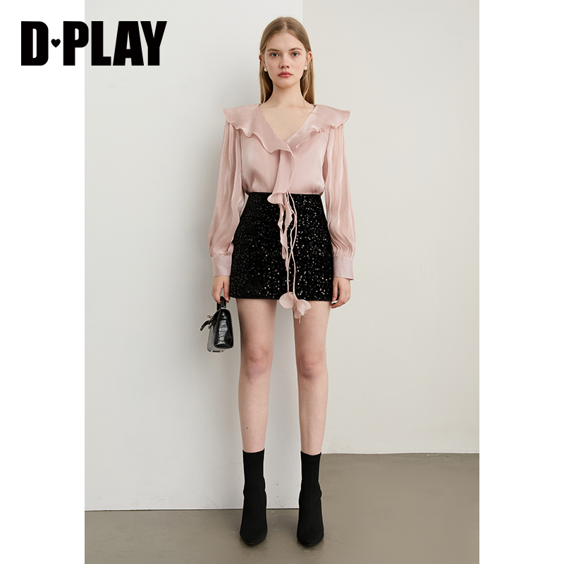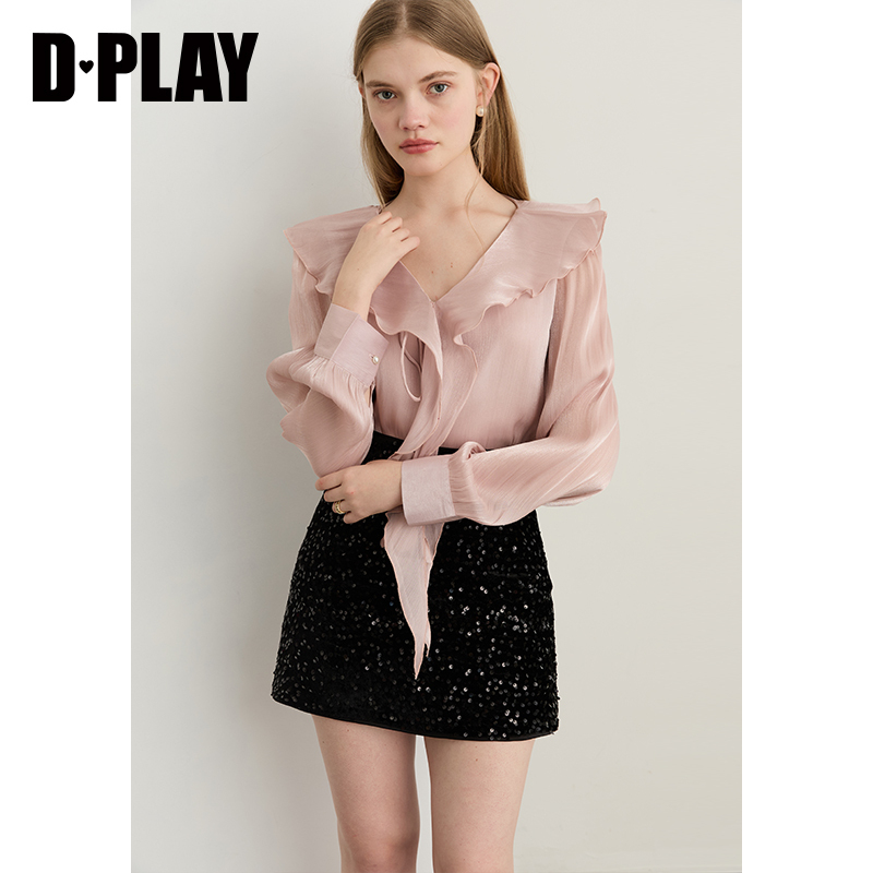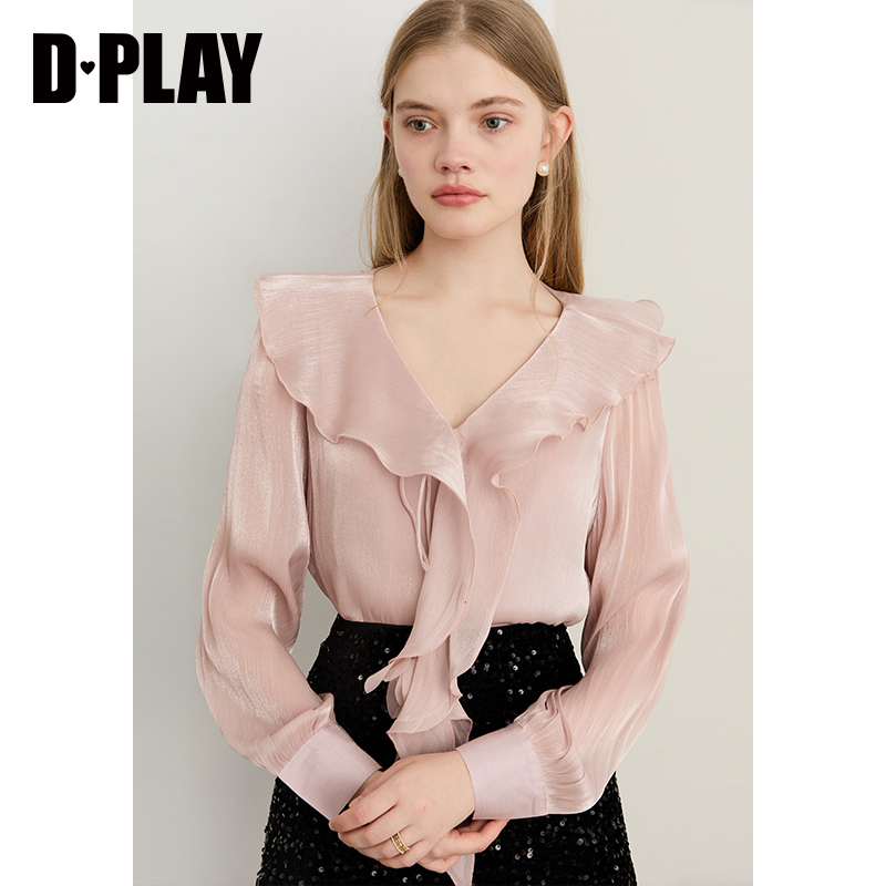 新款 2025秋装 设计感上衣精梳棉打底衬衣 女长袖 初影木耳领白衬衫