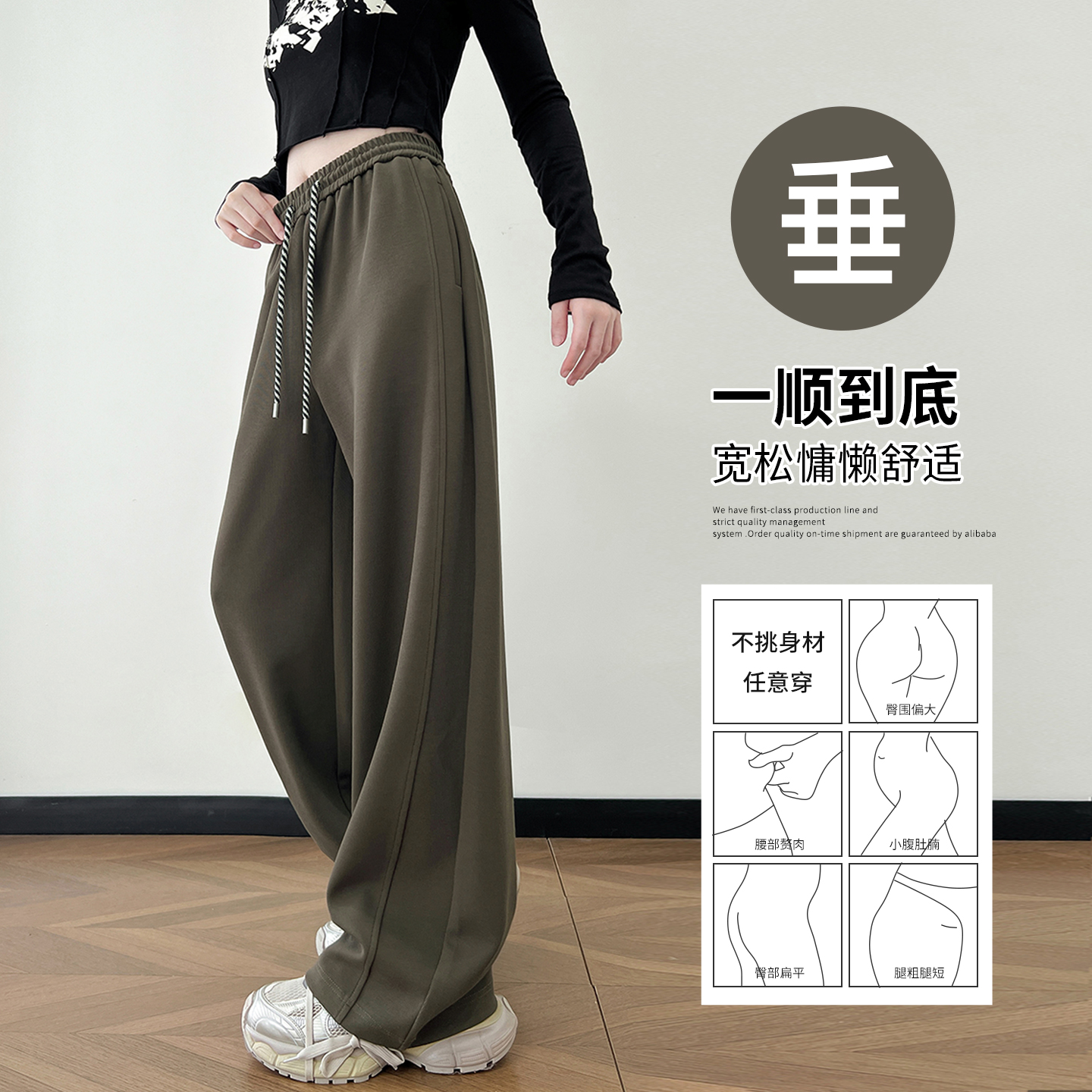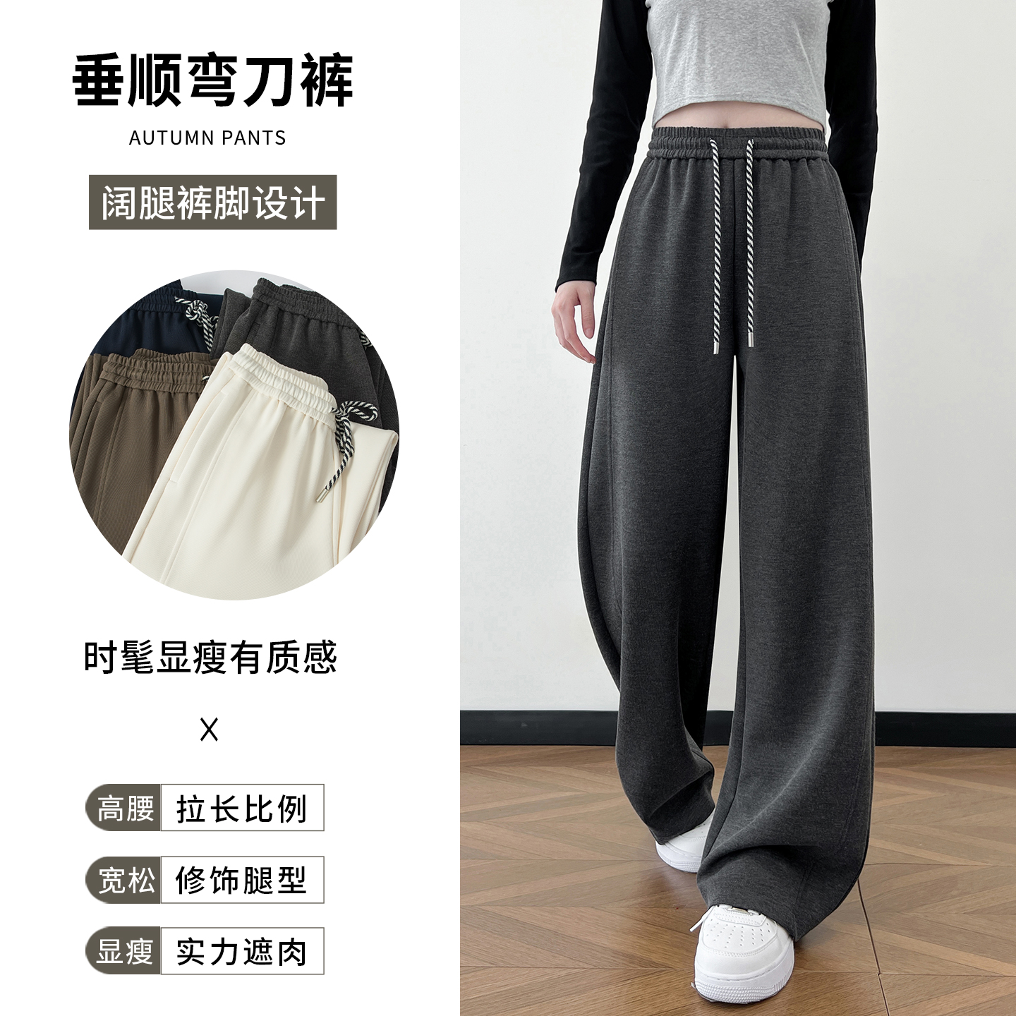 高级宽松bf慵懒垂感直筒加绒休闲阔腿裤 2025新款 子女春秋季 糯米裤