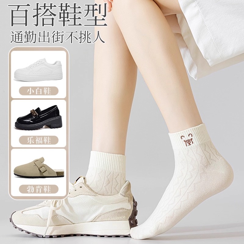 白色可爱中筒袜夏季 纯棉秋季 百搭长袜品质好 爆款 袜子女2025新款