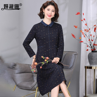 中年妈妈羊毛连衣裙秋高端优雅2025新款 阔太太翻领减龄气质长裙子