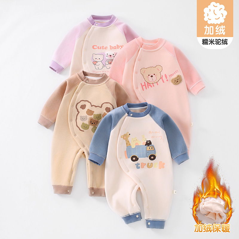 婴儿连体衣春秋加绒新生儿衣服超萌男女宝宝秋冬外出服爬爬服动物