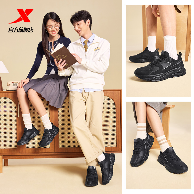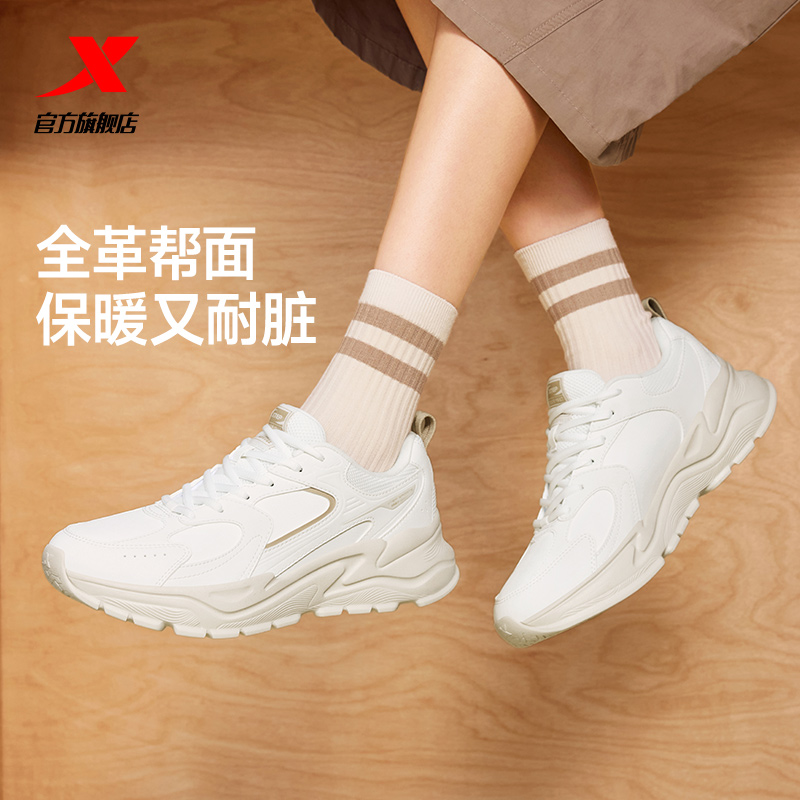 革面保暖厚底时尚 运动鞋 平底鞋 板鞋 子 女款 秋季 女鞋 特步男鞋 休闲鞋