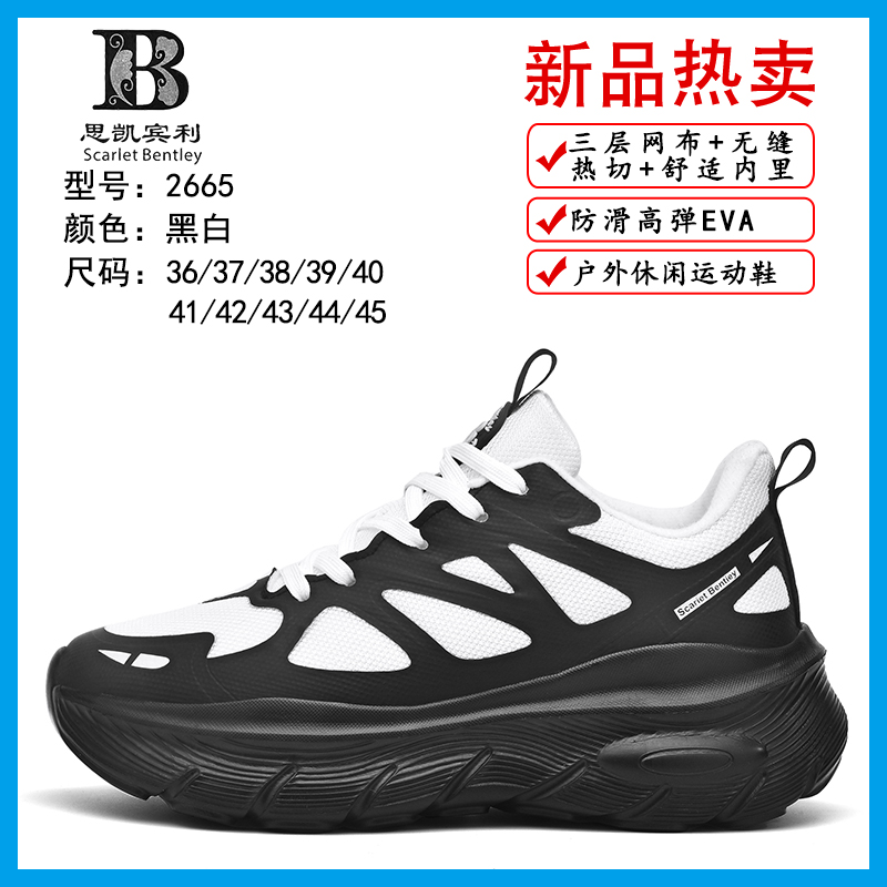 莆田男鞋 秋冬透气网面防臭复古百搭运动休闲跑步厚底增高老爹潮鞋
