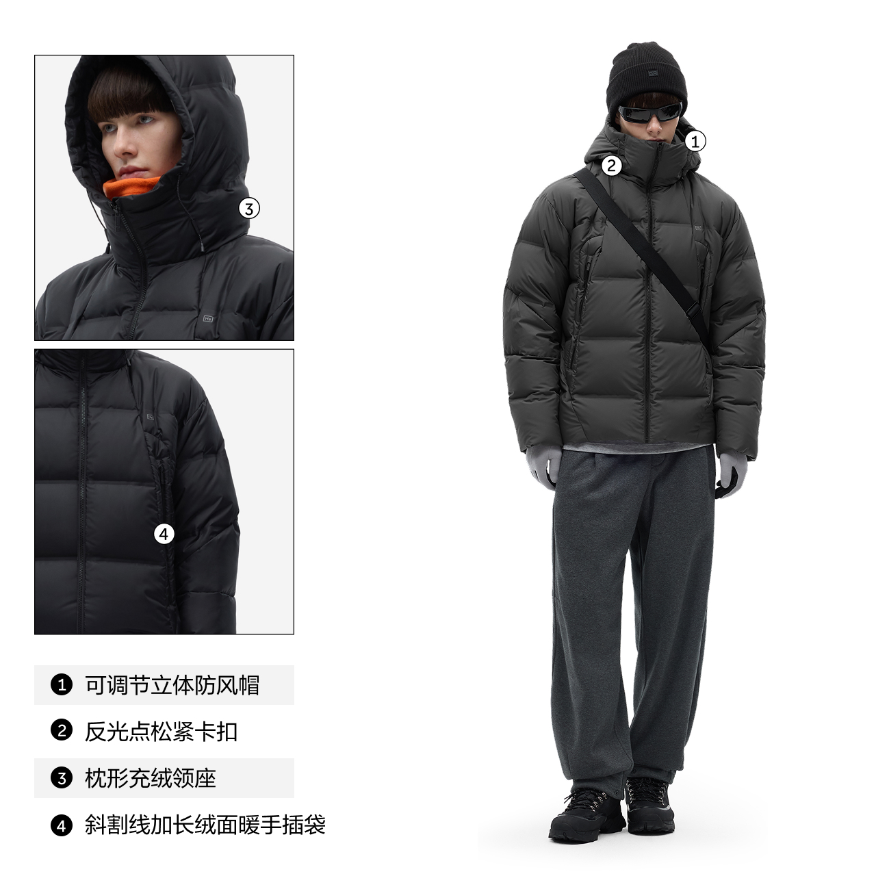 蕉内氢气502Cloud男士 防风连帽斜分割侧袋面包羽绒服保暖外套新款