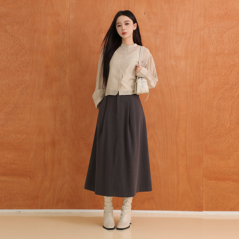 佐丹奴长款 伞裙女纯棉磨毛通勤压褶A字裙半松紧腰半身裙05464701