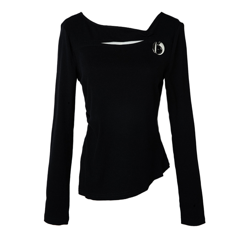 内搭打底上衣 别致设计感小众显瘦修身 菲梦伊黑色针织衫 T恤女秋季