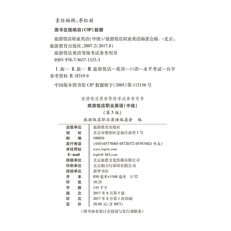 社直营 听音频9787563713233旅游饭店职业英语考试培训教材旅游教育出版 旅游饭店职业英语中级第5版 扫码