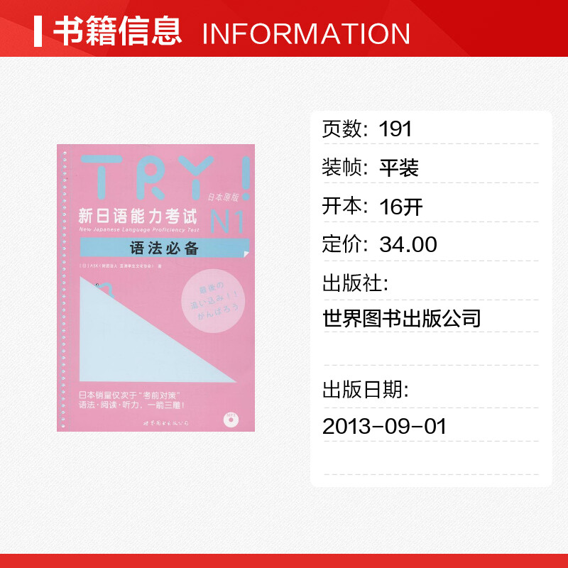 新日语能力考试N1语法必备 附网上下载 财团法人 新华文轩 亚洲学生文化协会 ABK TRY 日 日本原版
