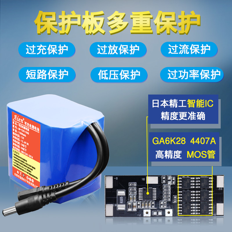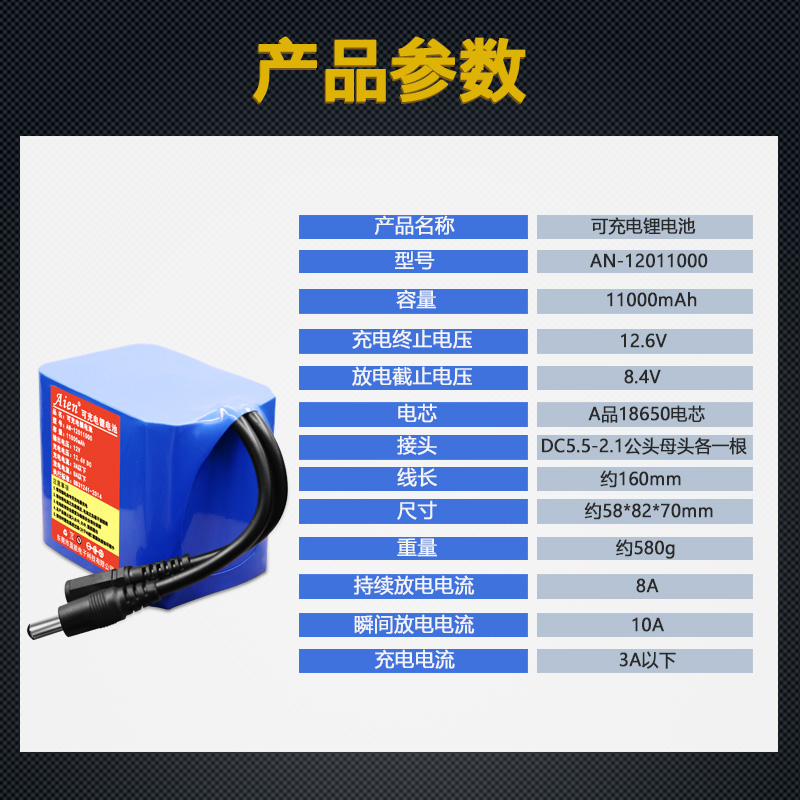 11AH大容量可充电锂电池组12V伏LED夜市摆地摊灯音响音箱后备电源配1A充
