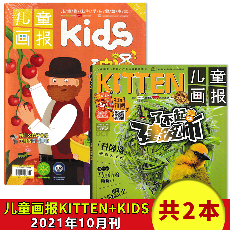 共2本 儿童画报KITTEN杂志 适合4 套装 16岁孩子趣味百科图画科普期刊书籍 一期双刊 可选 2021年11月组合打包 Kids